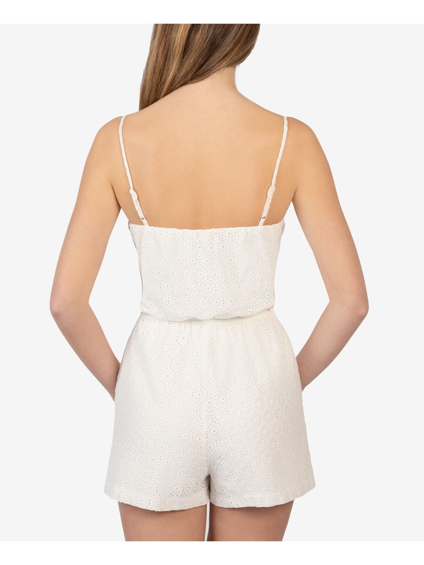B DARLIN Womens Ivory Eyelet Tie Pull-on Styling Adjustable Stra Spaghetti Strap V Neck Wear To Work Straight leg Romper 1\2