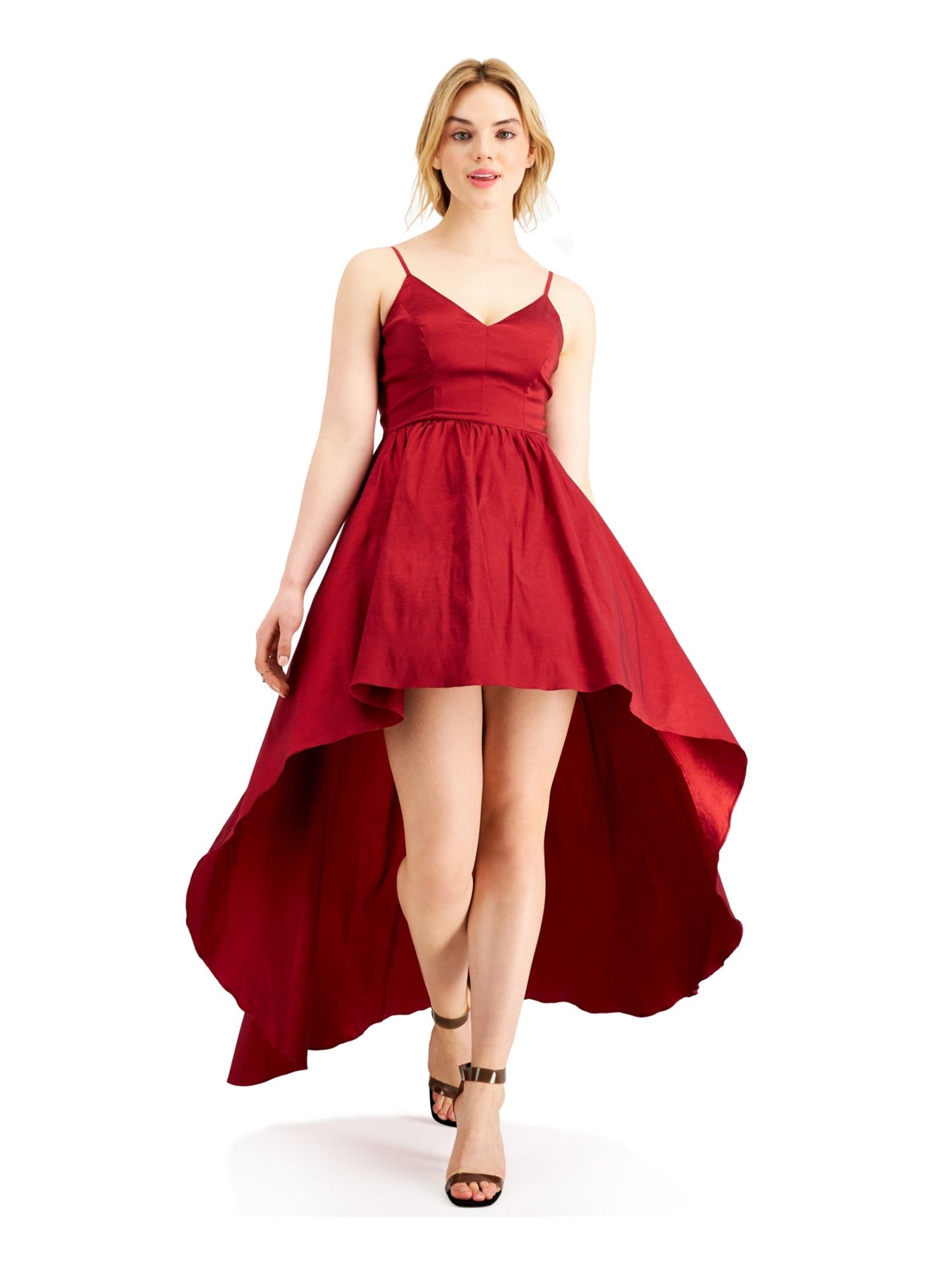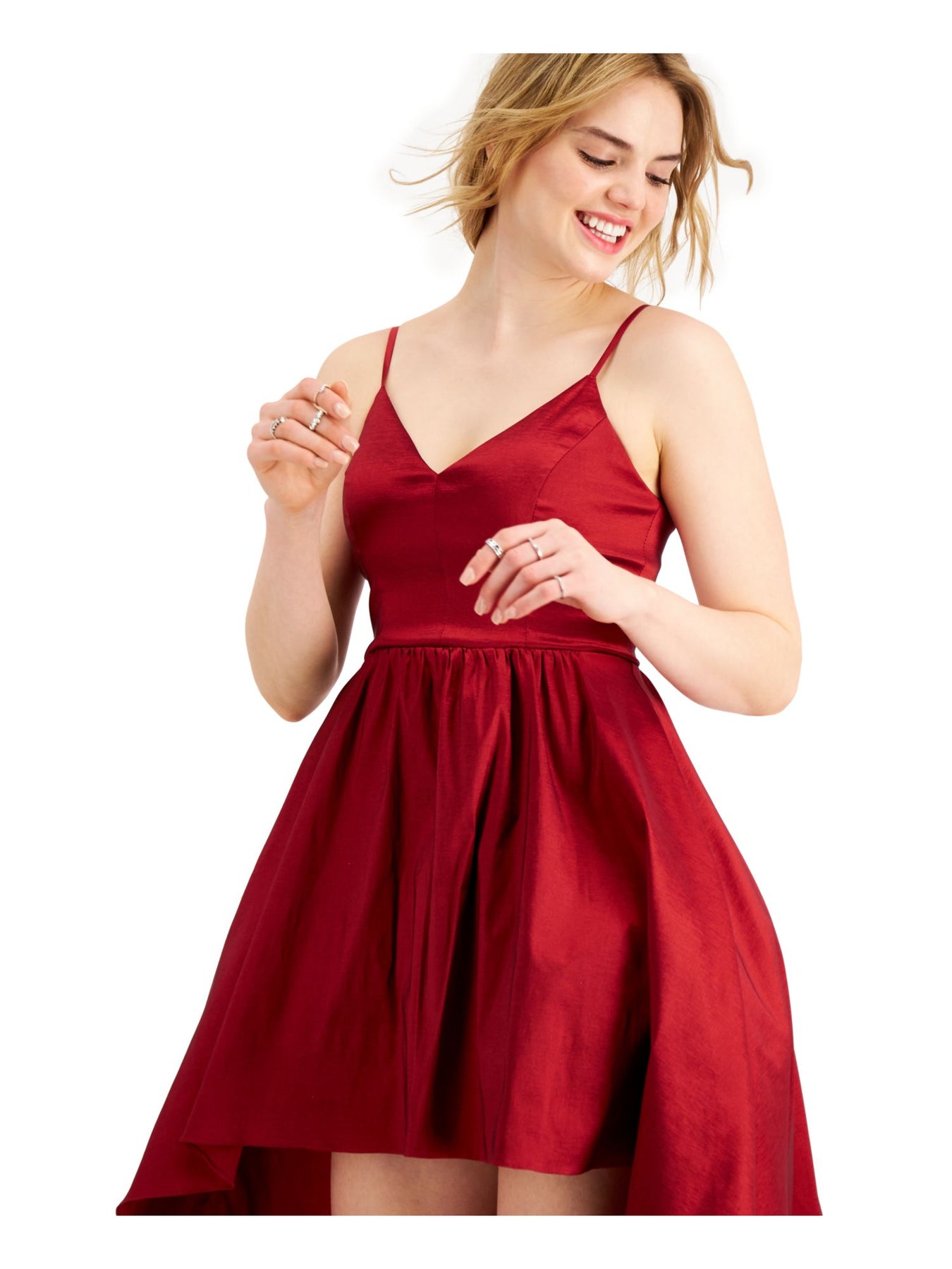 B DARLIN Womens Red Zippered Spaghetti Strap V Neck Mini Party Hi-Lo Dress 11\12