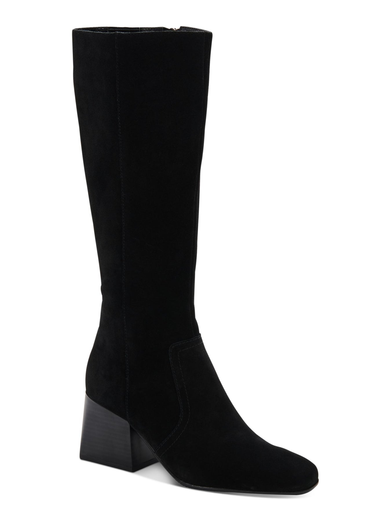 Womens Black Goring Cushioned Waterproof Tori Square Toe Stacked Heel Zip-Up Suede Dress Boots Shoes M