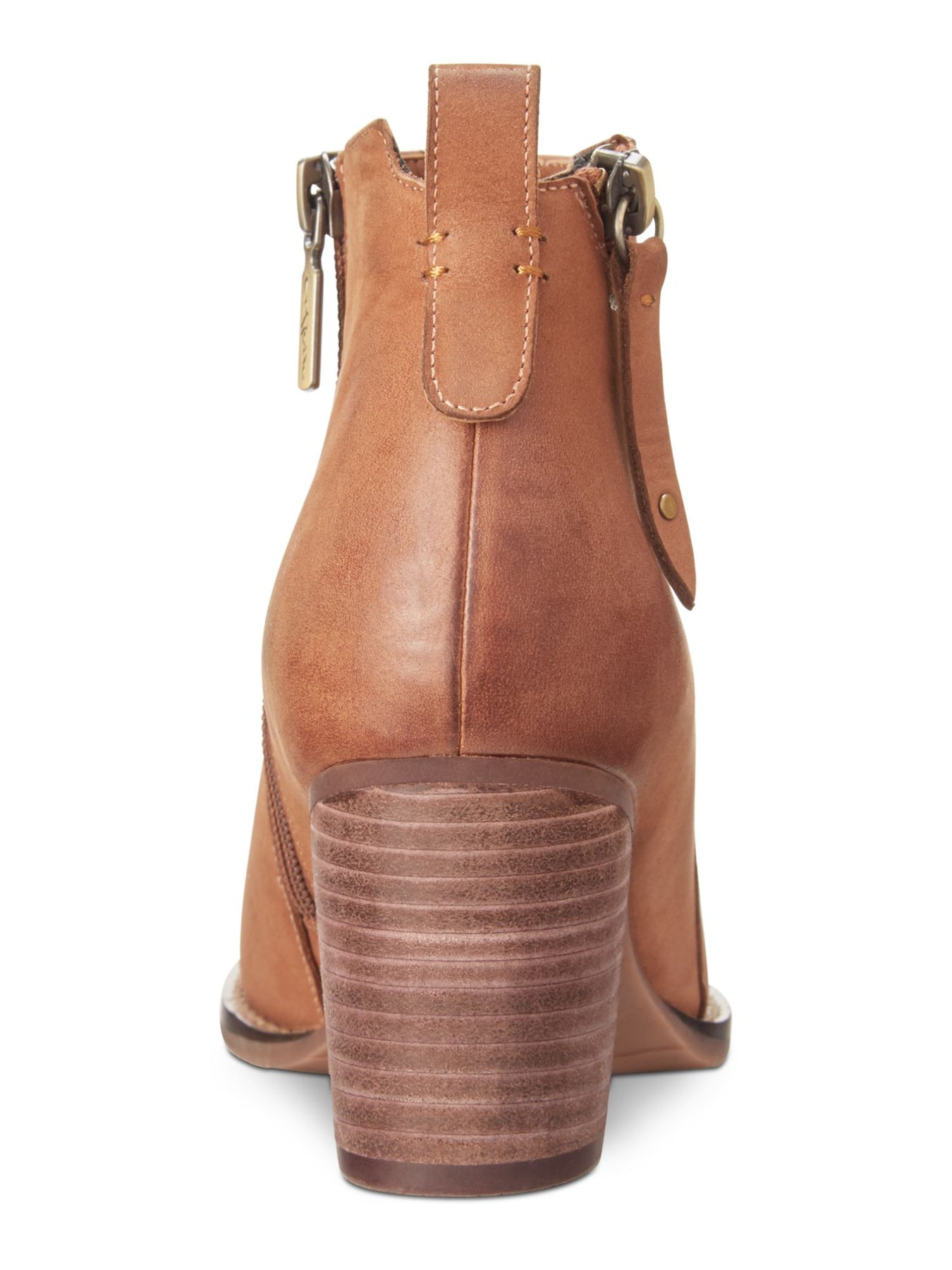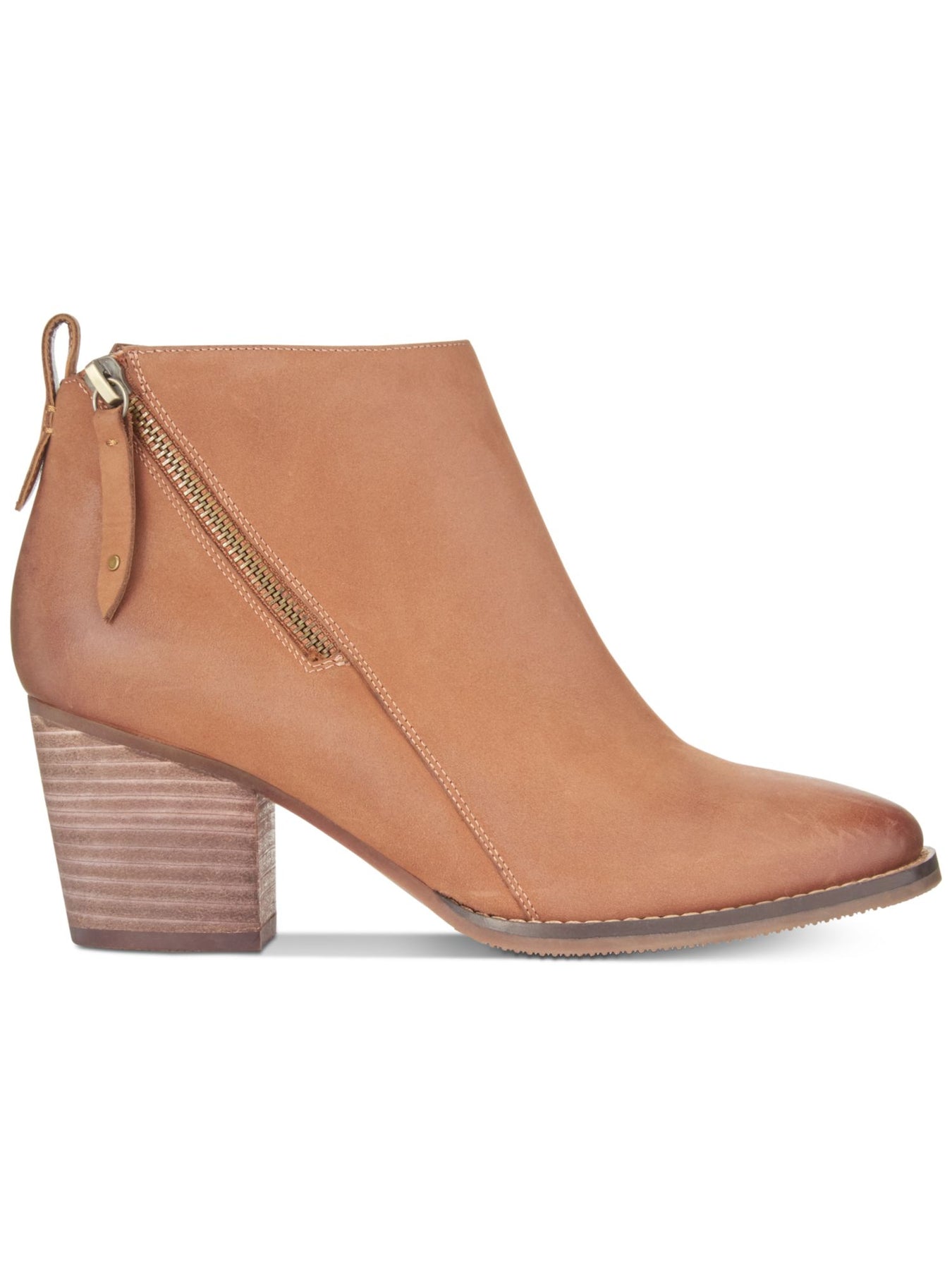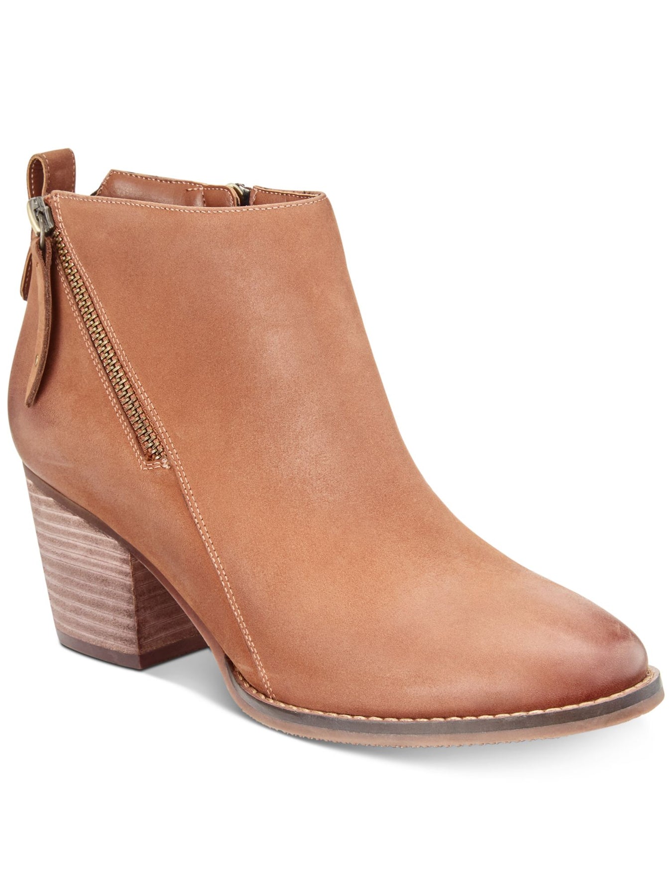 Womens Brown Western Style Cushioned Waterproof Zipper Accent Nancy Almond Toe Stacked Heel Zip-Up Leather Booties M