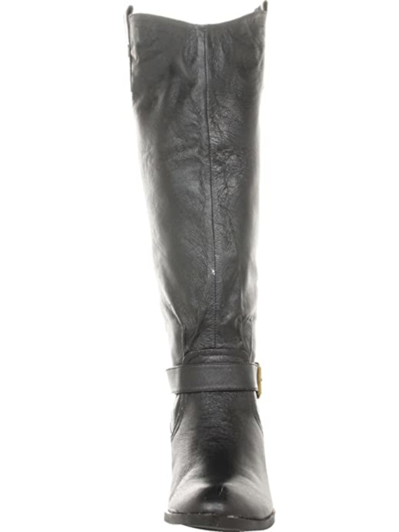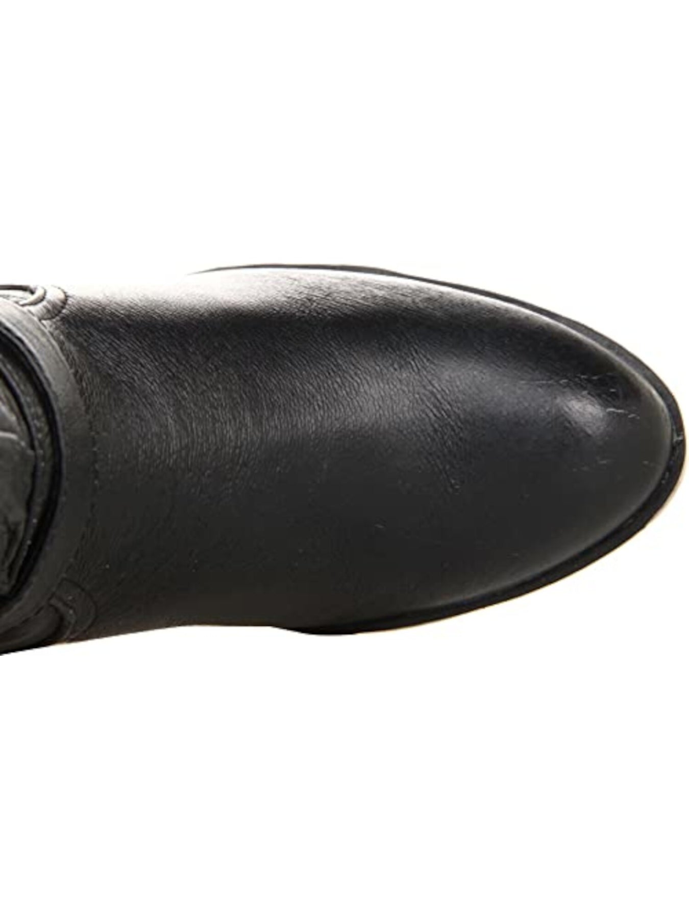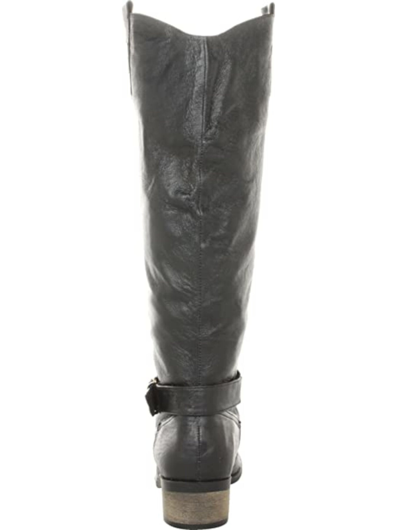 CHINESE LAUNDRY Womens Black Side Pull Tabs Brushed Brass Hardware Buckle Accent Roger Round Toe Block Heel Slip On Leather Riding Boot