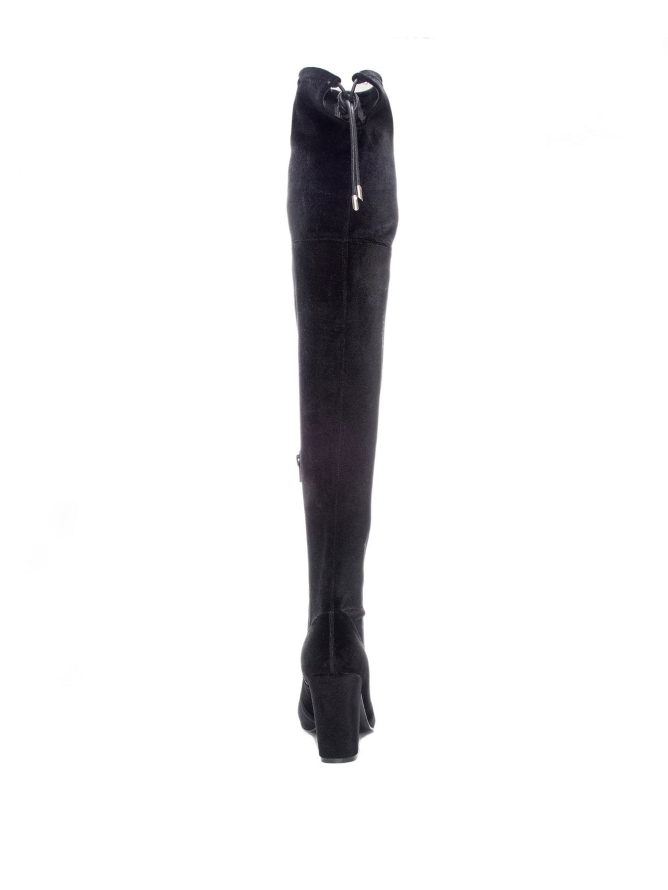 Womens Black Tie Velvet Fabric Comfort Bree Round Toe Block Heel Zip-Up Dress Heeled Boots