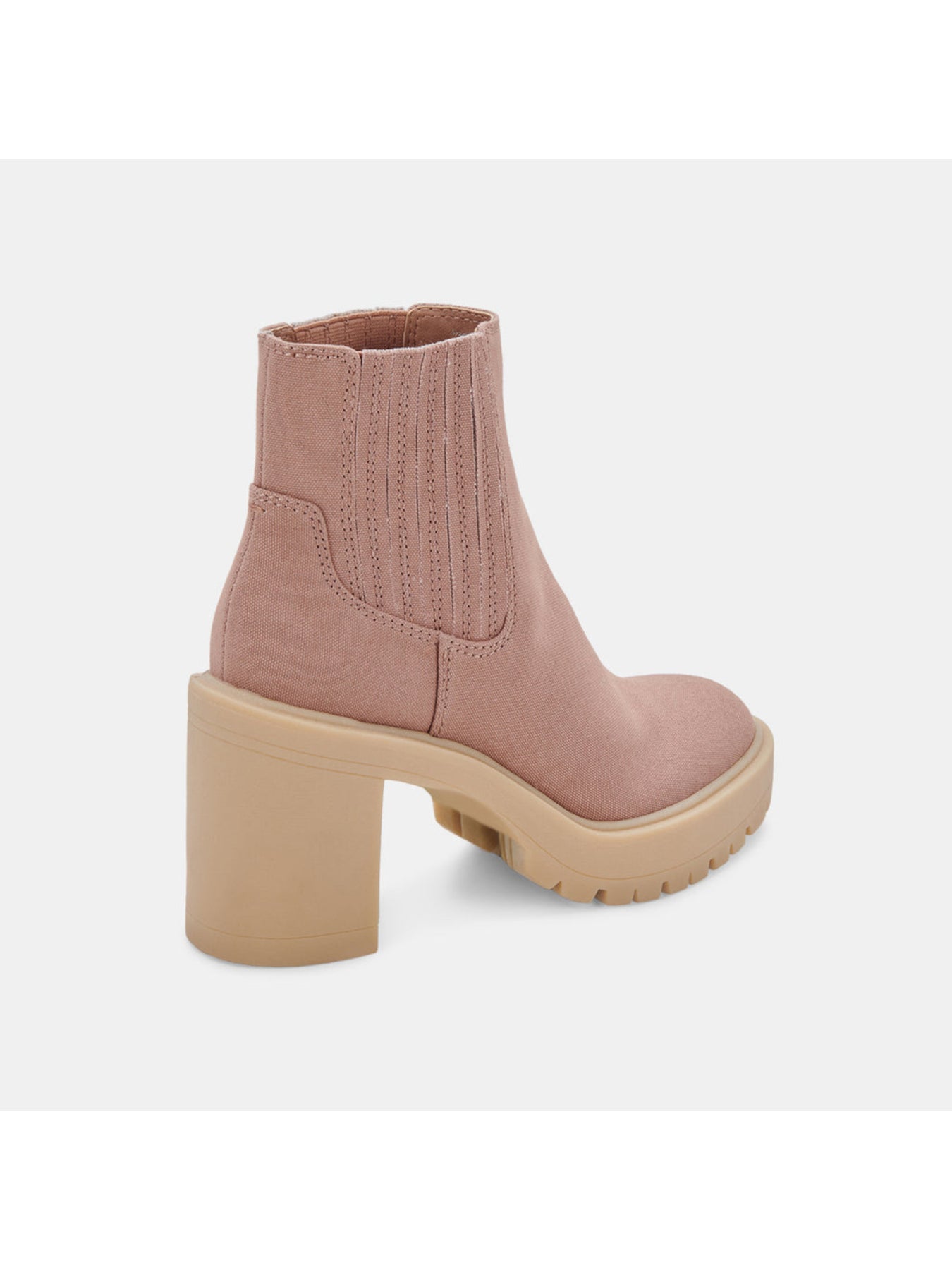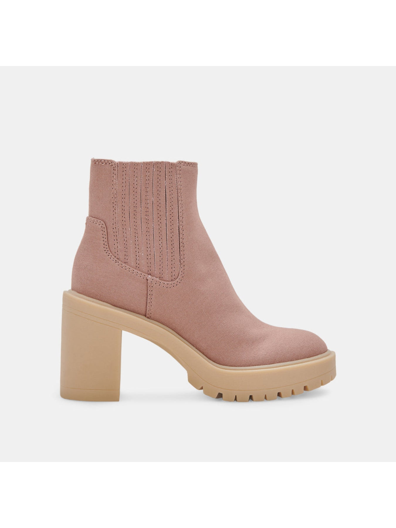 Womens Beige 1" Platform Goring Lug Sole Caster Round Toe Block Heel Booties
