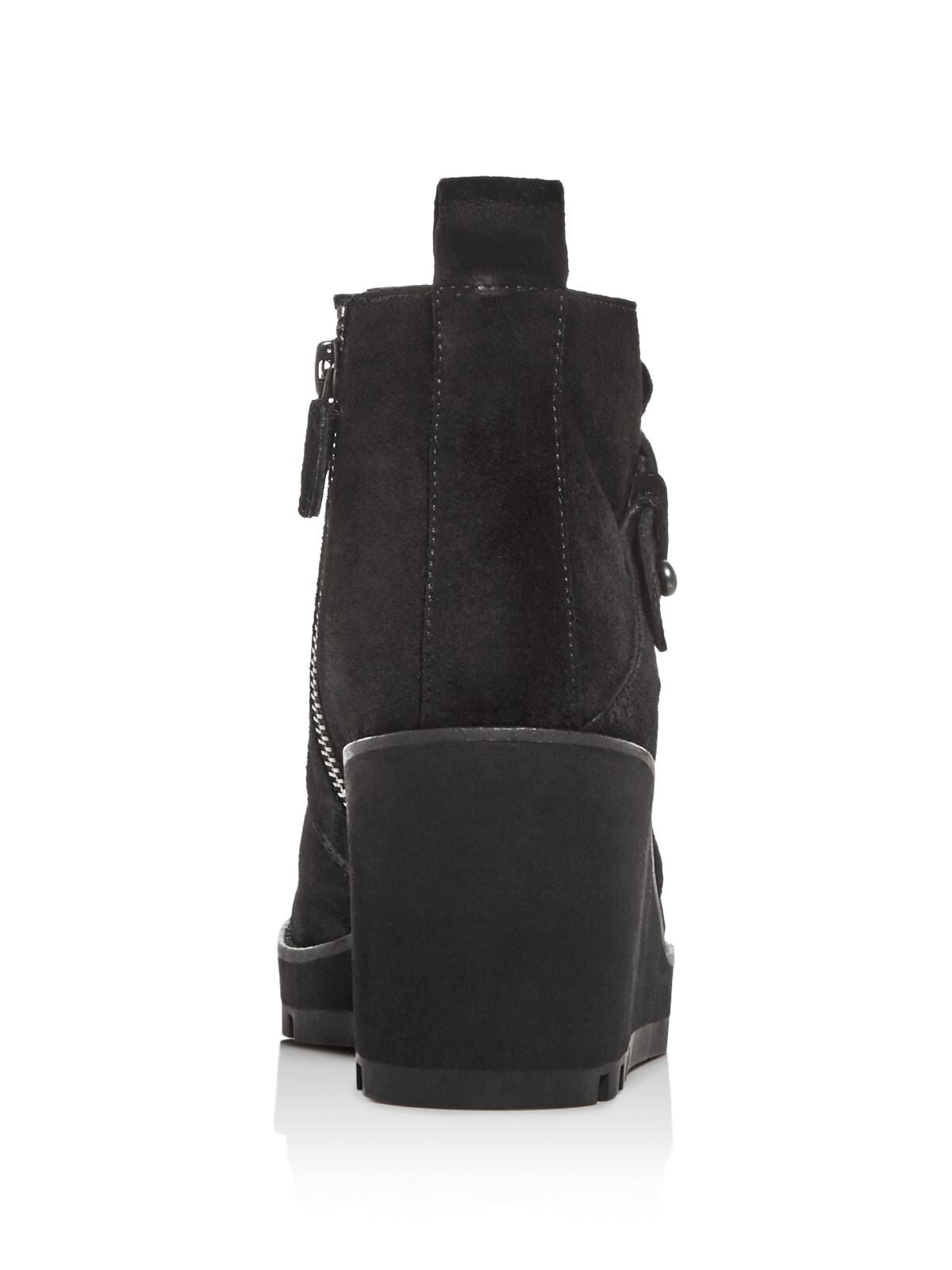 Womens Black 1" Platform Pull Tab Treaded Comfort Tinker Round Toe Wedge Zip-Up Leather Booties M