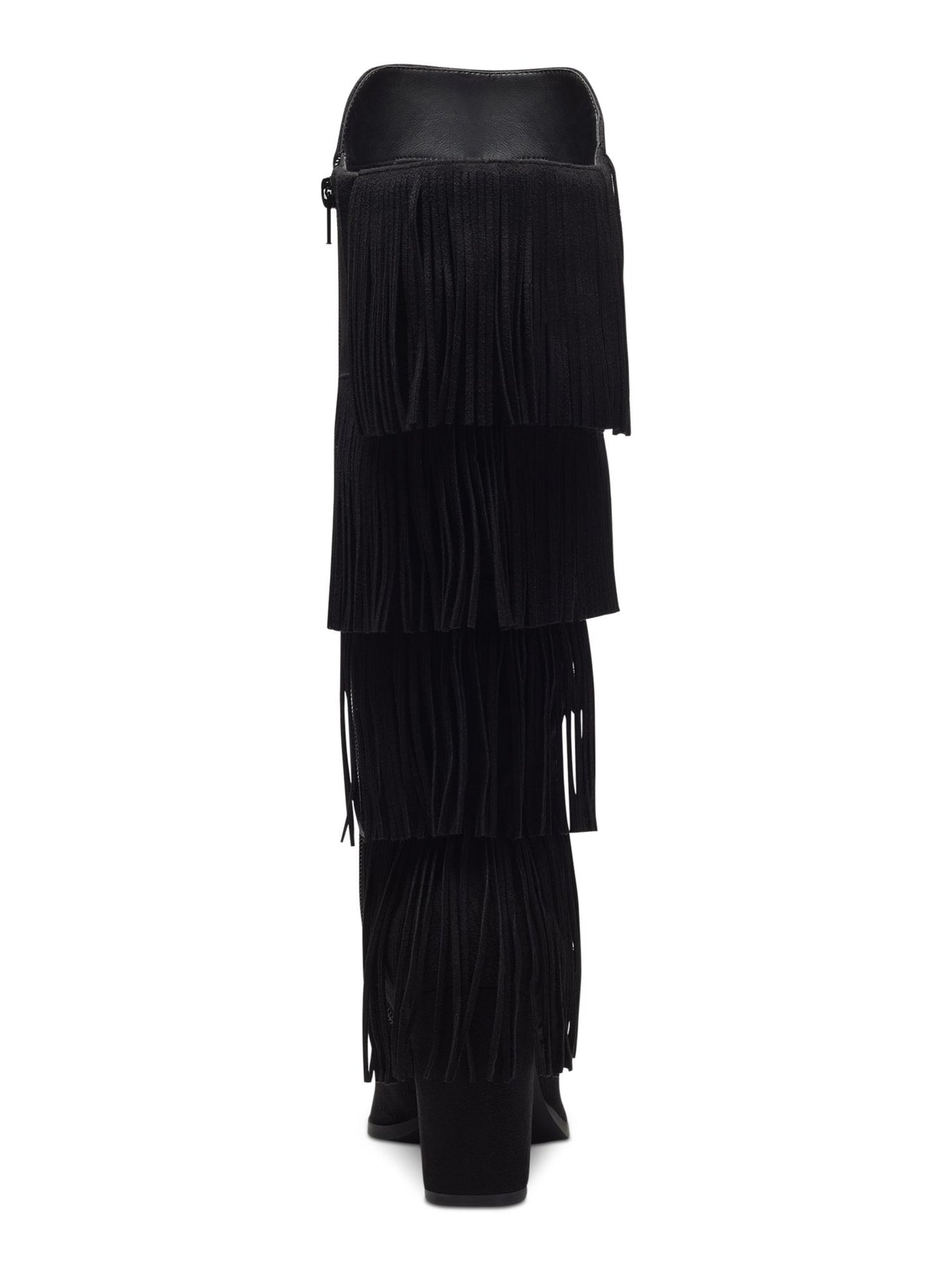 Womens Black Fringed Cushioned Yomesa Pointed Toe Block Heel Zip-Up Heeled Boots M