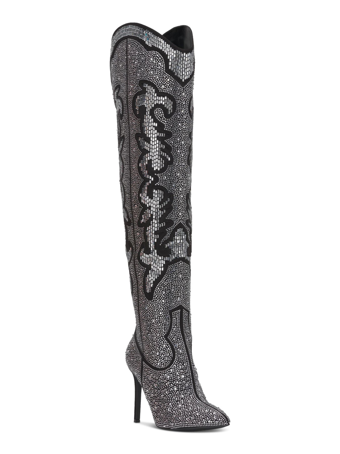 Womens Silver Western Embellishment V-Cut Back Goring Padded Iresa 4 Pointed Toe Stiletto Zip-Up Heeled Boots M
