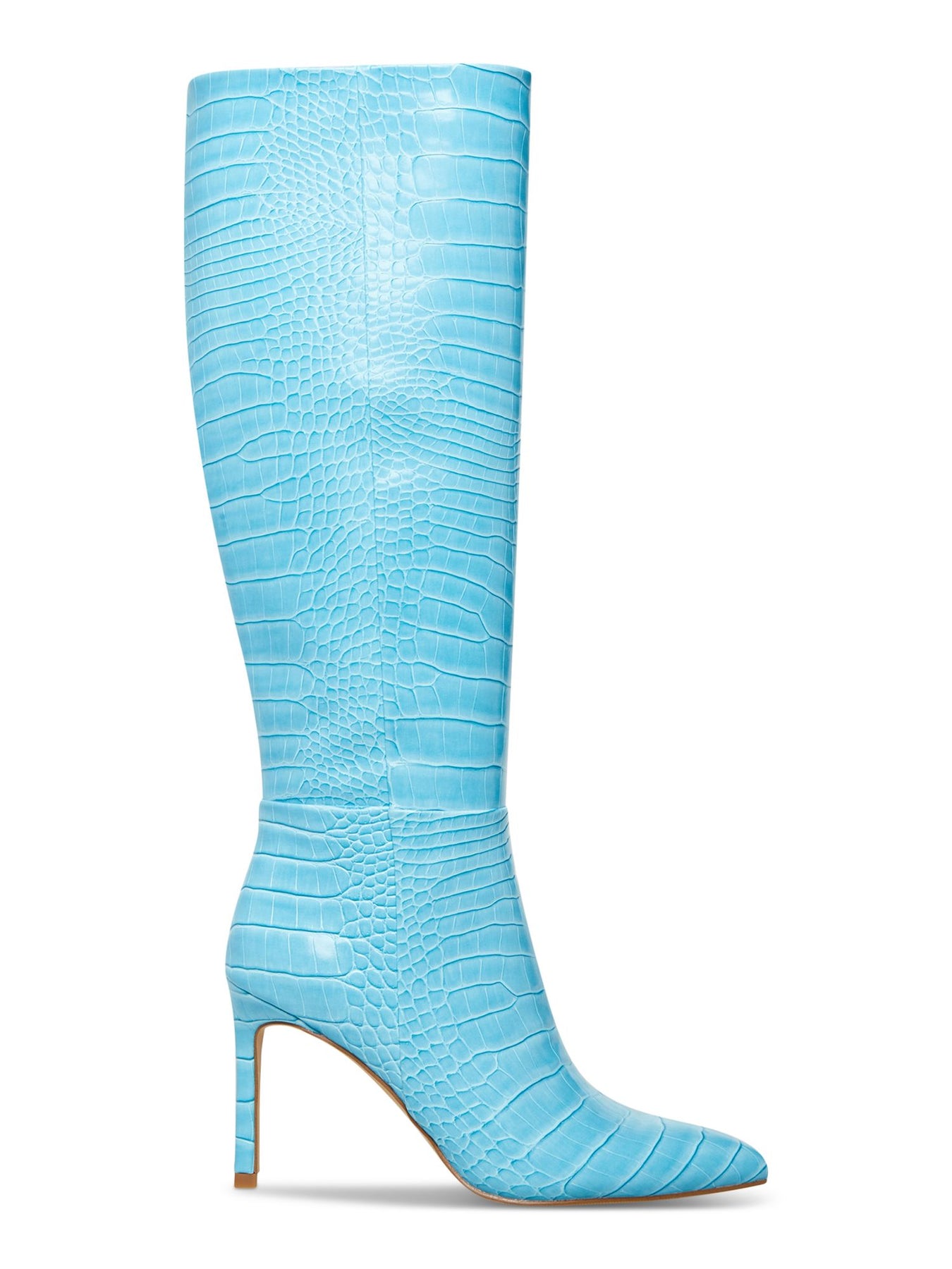 Womens Light Blue Croco-Embossed Padded Chantelle Pointed Toe Stiletto Zip-Up Dress Heeled Boots M