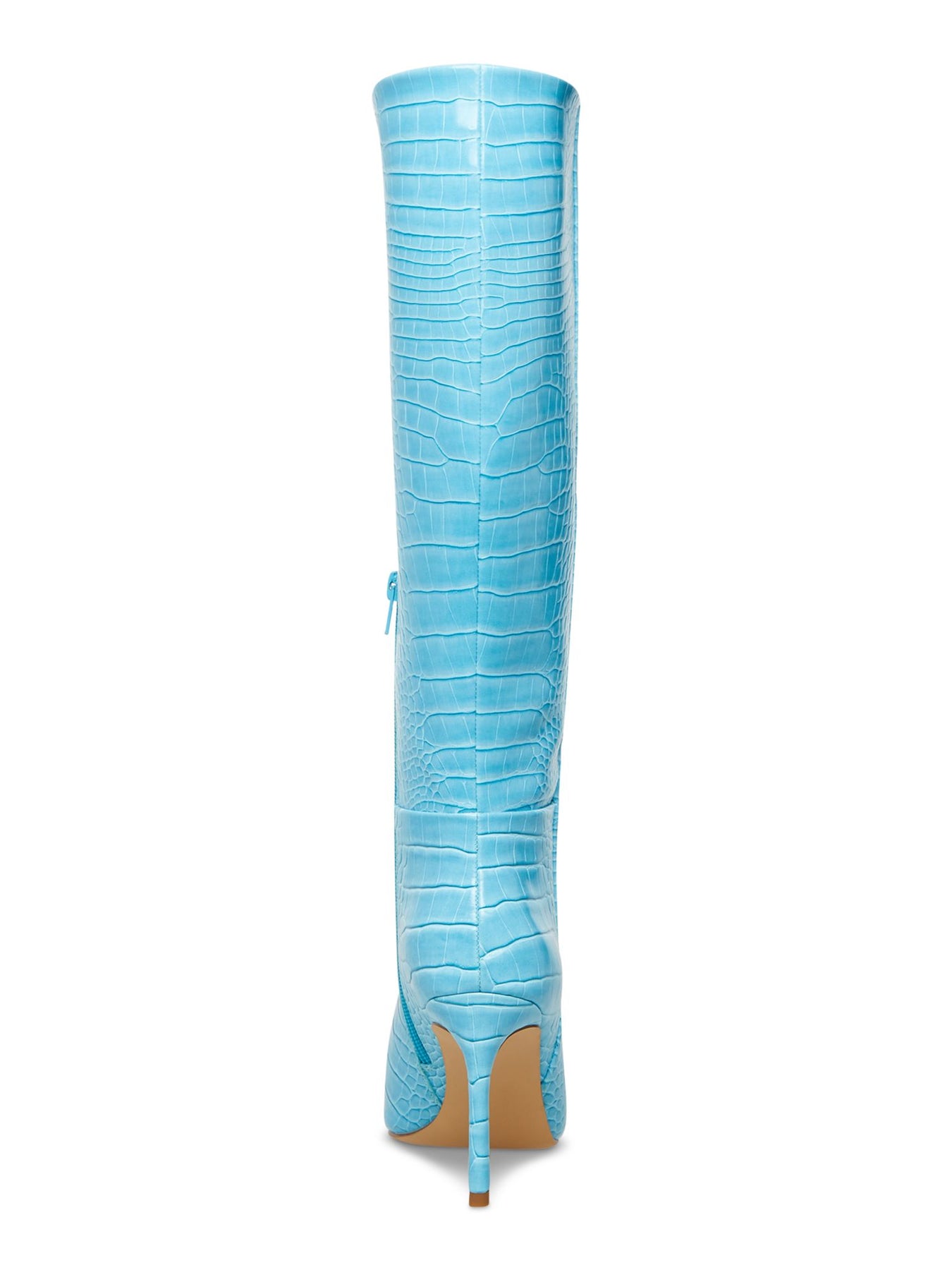 MADDEN GIRL Womens Light Blue Croco-Embossed Padded Chantelle Pointed Toe Stiletto Zip-Up Dress Heeled Boots M