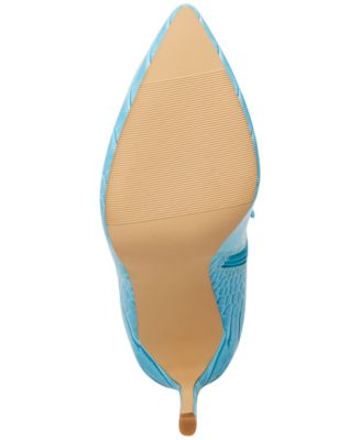 MADDEN GIRL Womens Light Blue Croco-Embossed Padded Chantelle Pointed Toe Stiletto Zip-Up Dress Boots 5 M