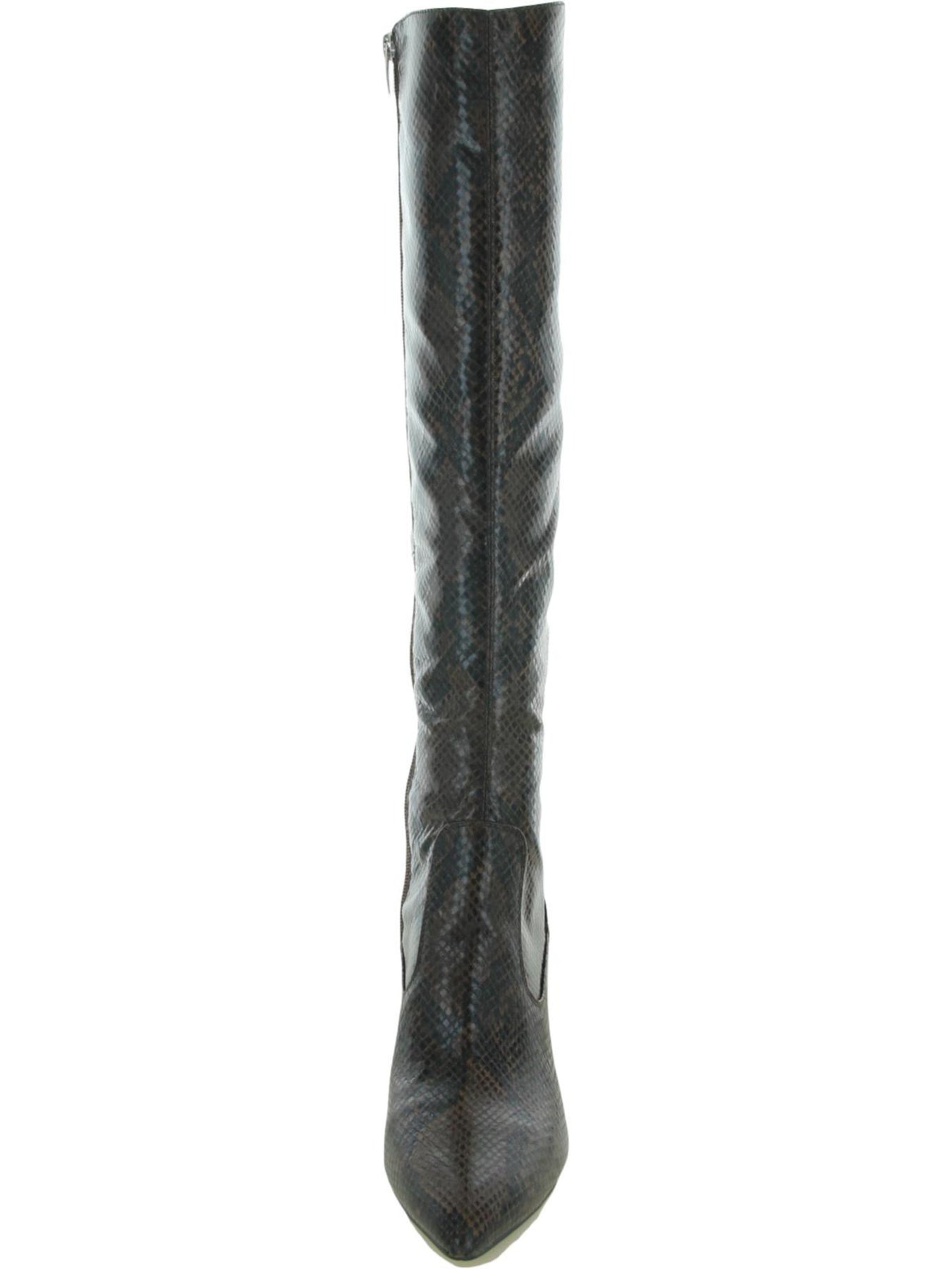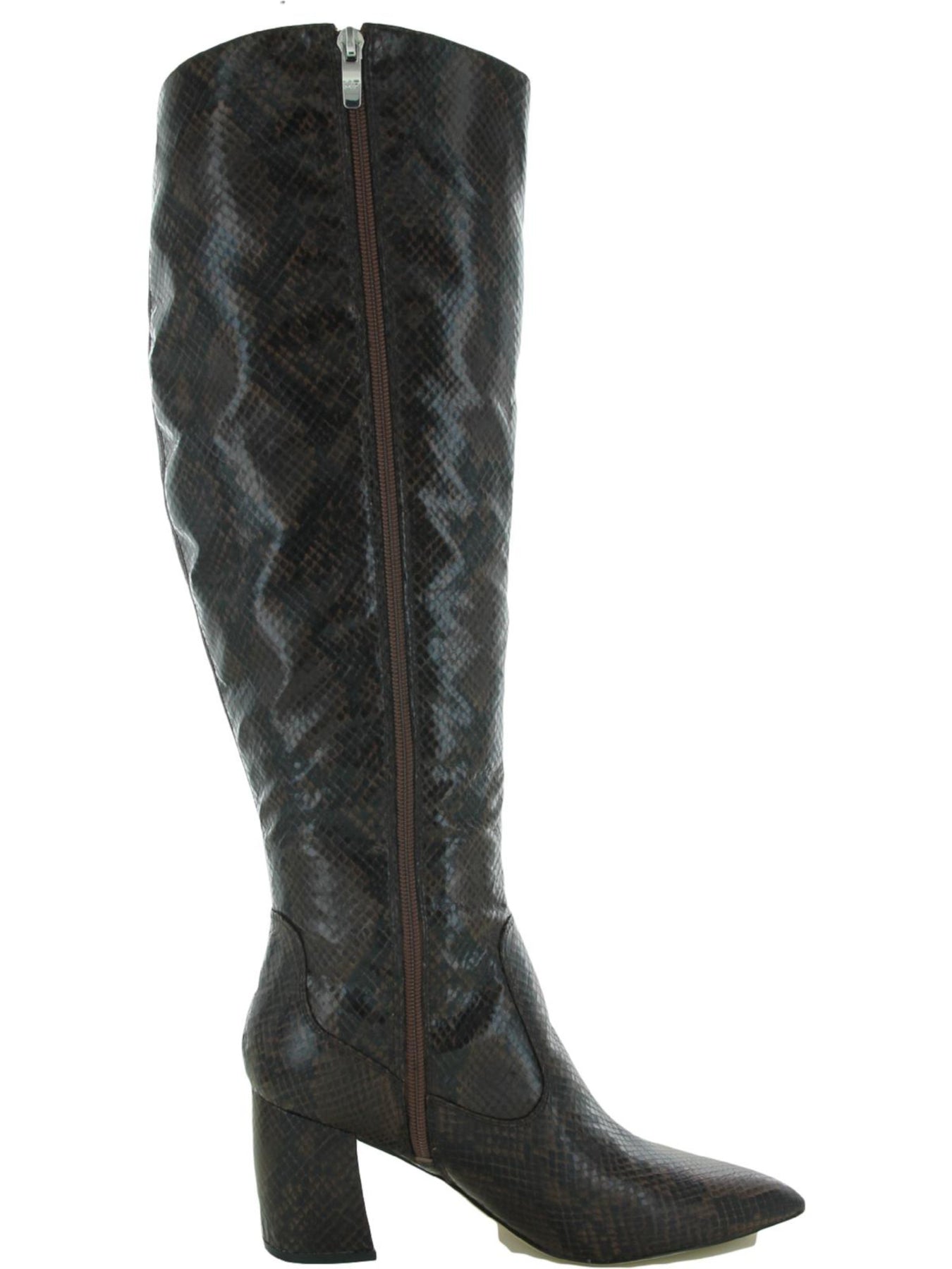Womens Brown Snake Print Cushioned Asymmetrical Retie Pointed Toe Block Heel Zip-Up Dress Heeled Boots M