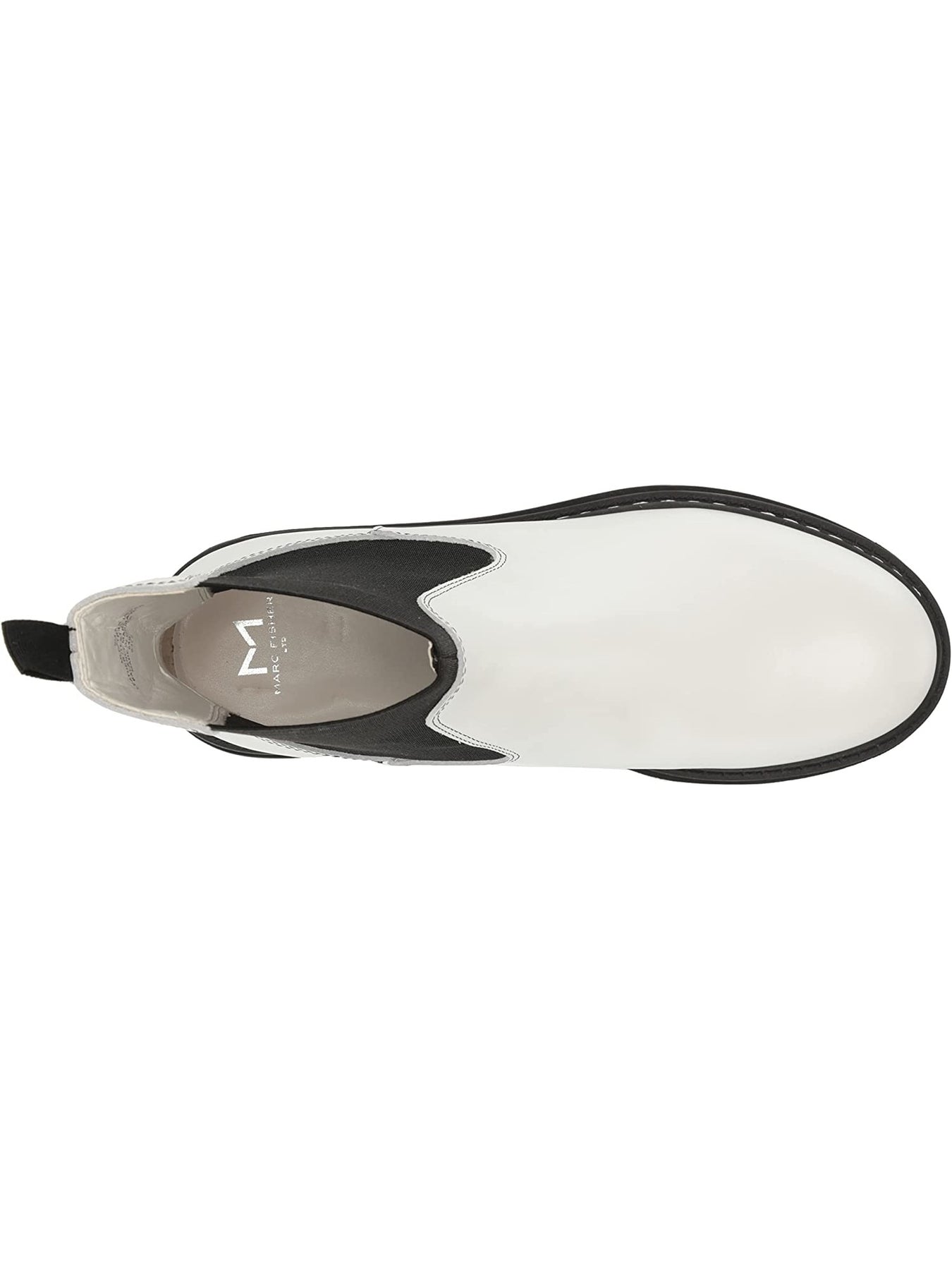 MARC FISHER Womens White 1" Platform Goring Lug Sole Privi Round Toe Block Heel Leather Booties M