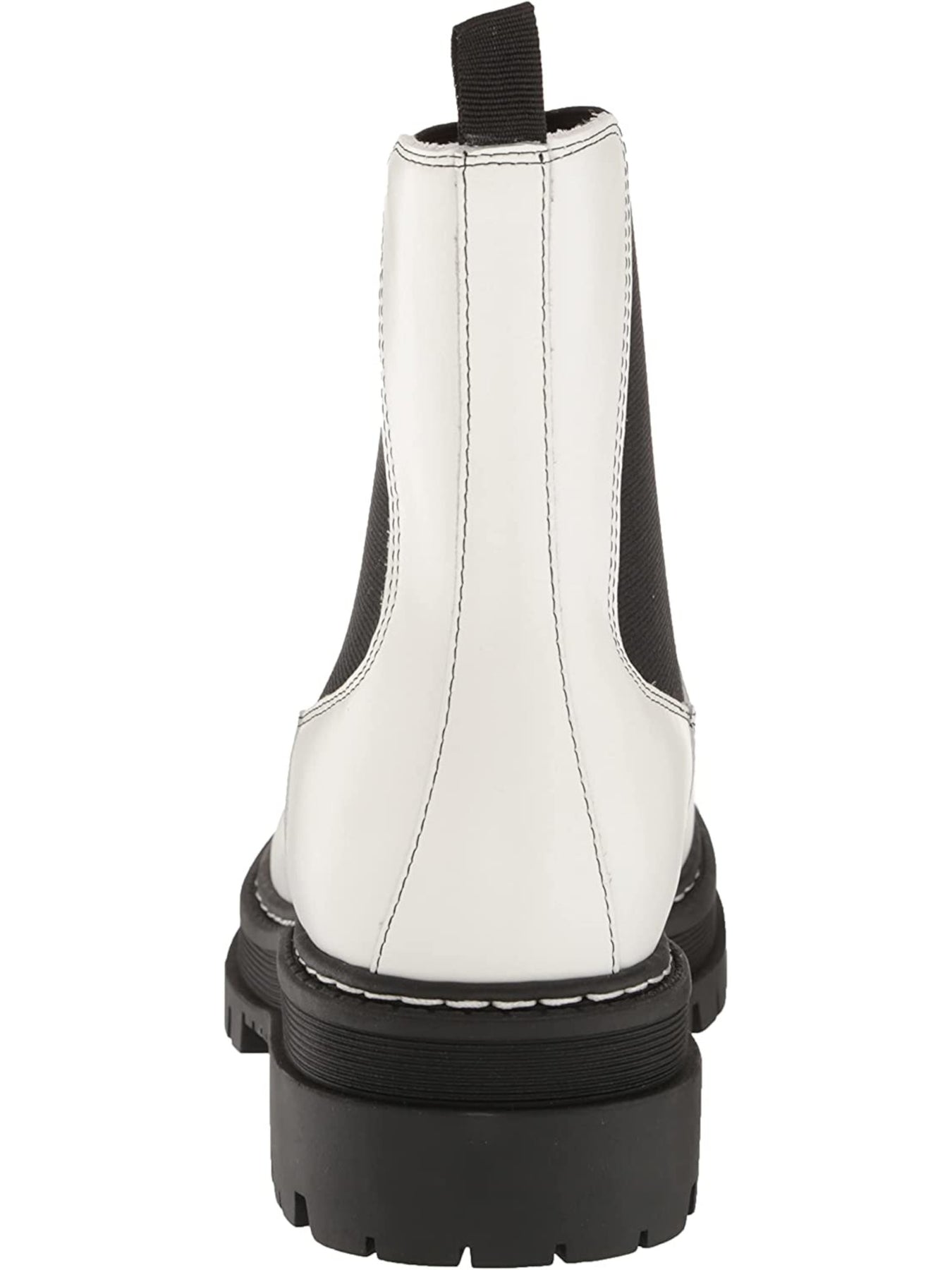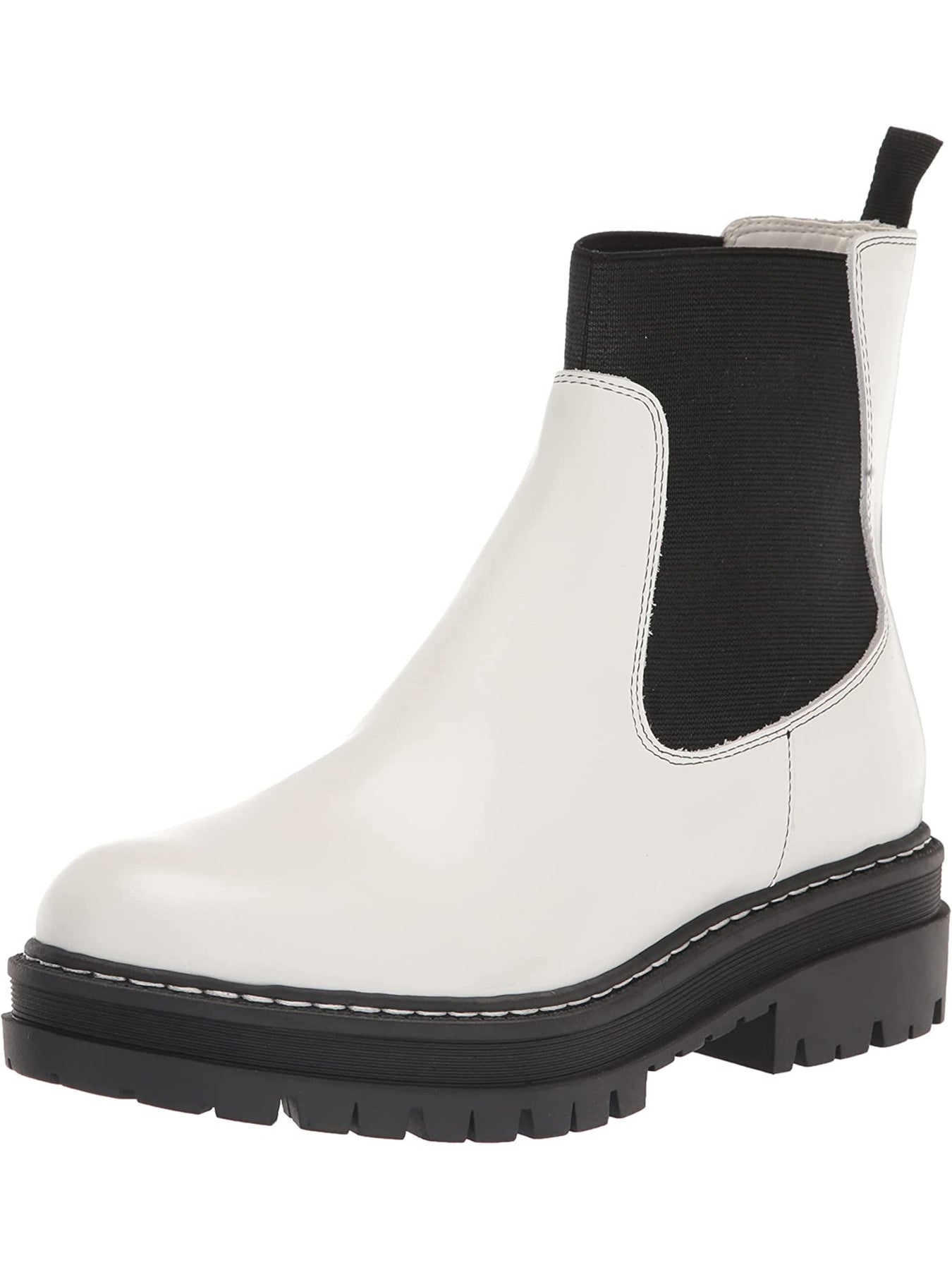 Womens White 1" Platform Goring Lug Sole Privi Round Toe Block Heel Leather Booties M