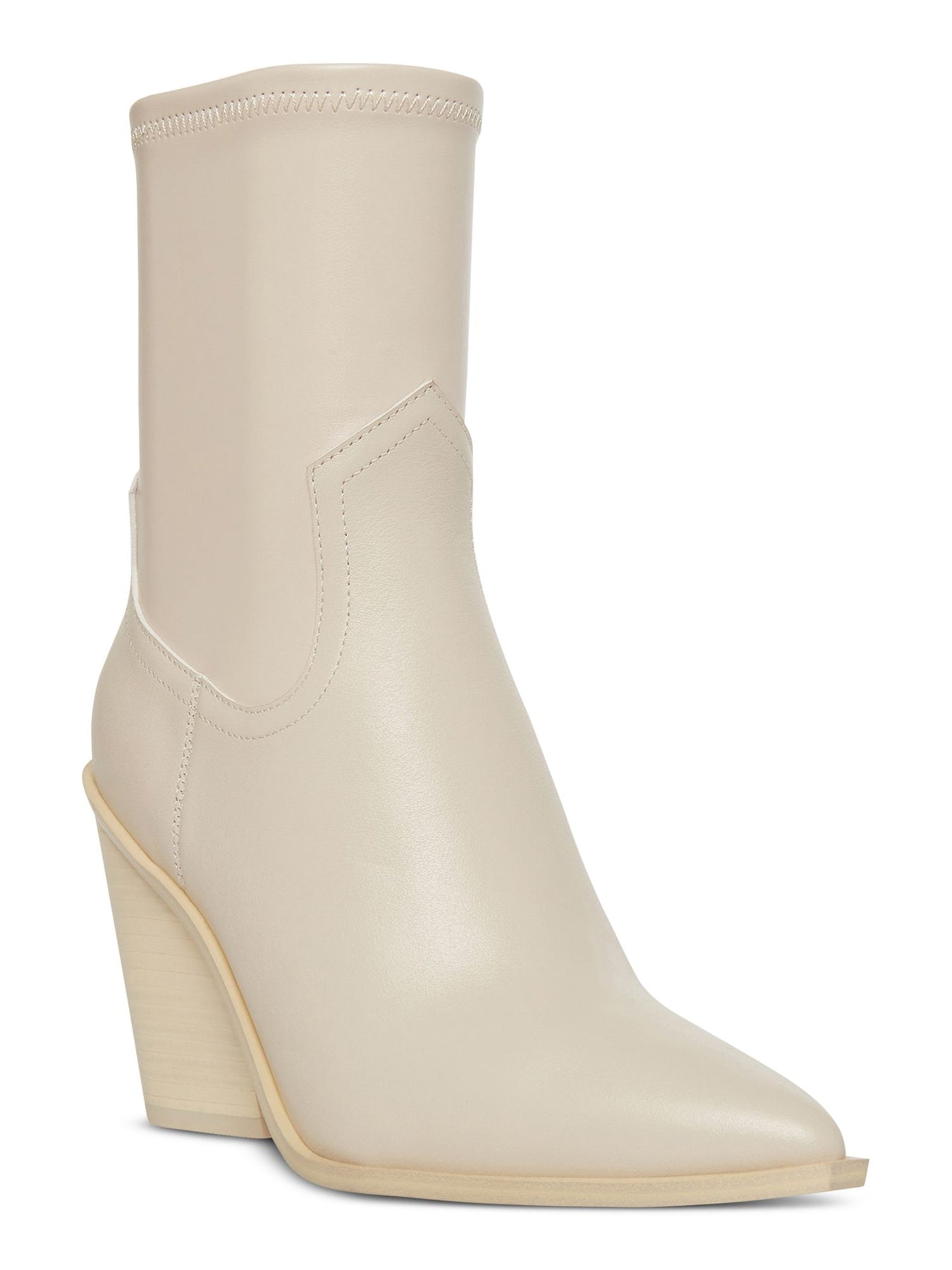 STEVE MADDEN Womens Ivory Stretch Thorn Pointed Toe Block Heel Zip-Up Leather Western Boot M