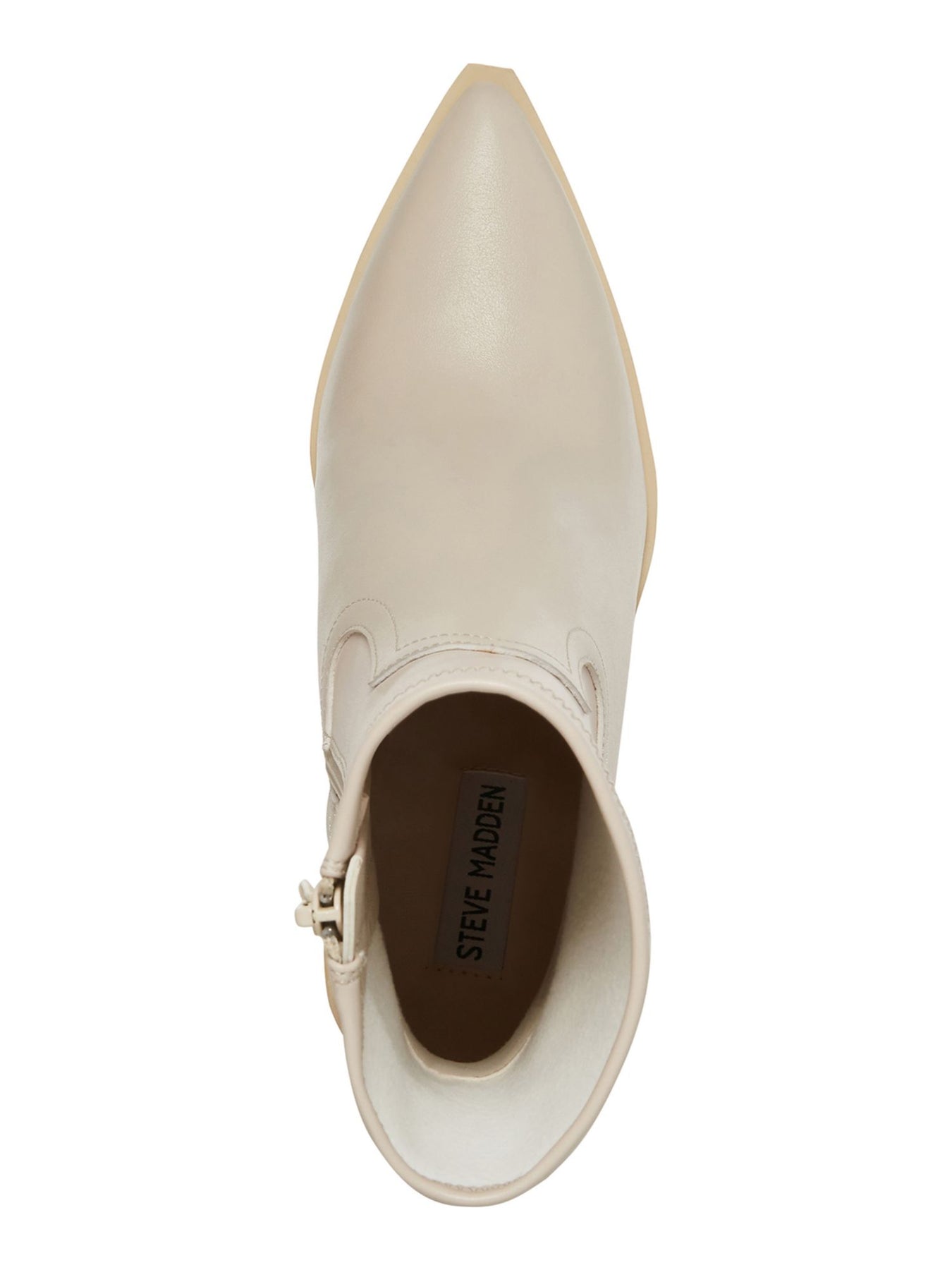 STEVE MADDEN Womens Ivory Stretch Thorn Pointed Toe Block Heel Zip-Up Leather Western Boot 6.5 M