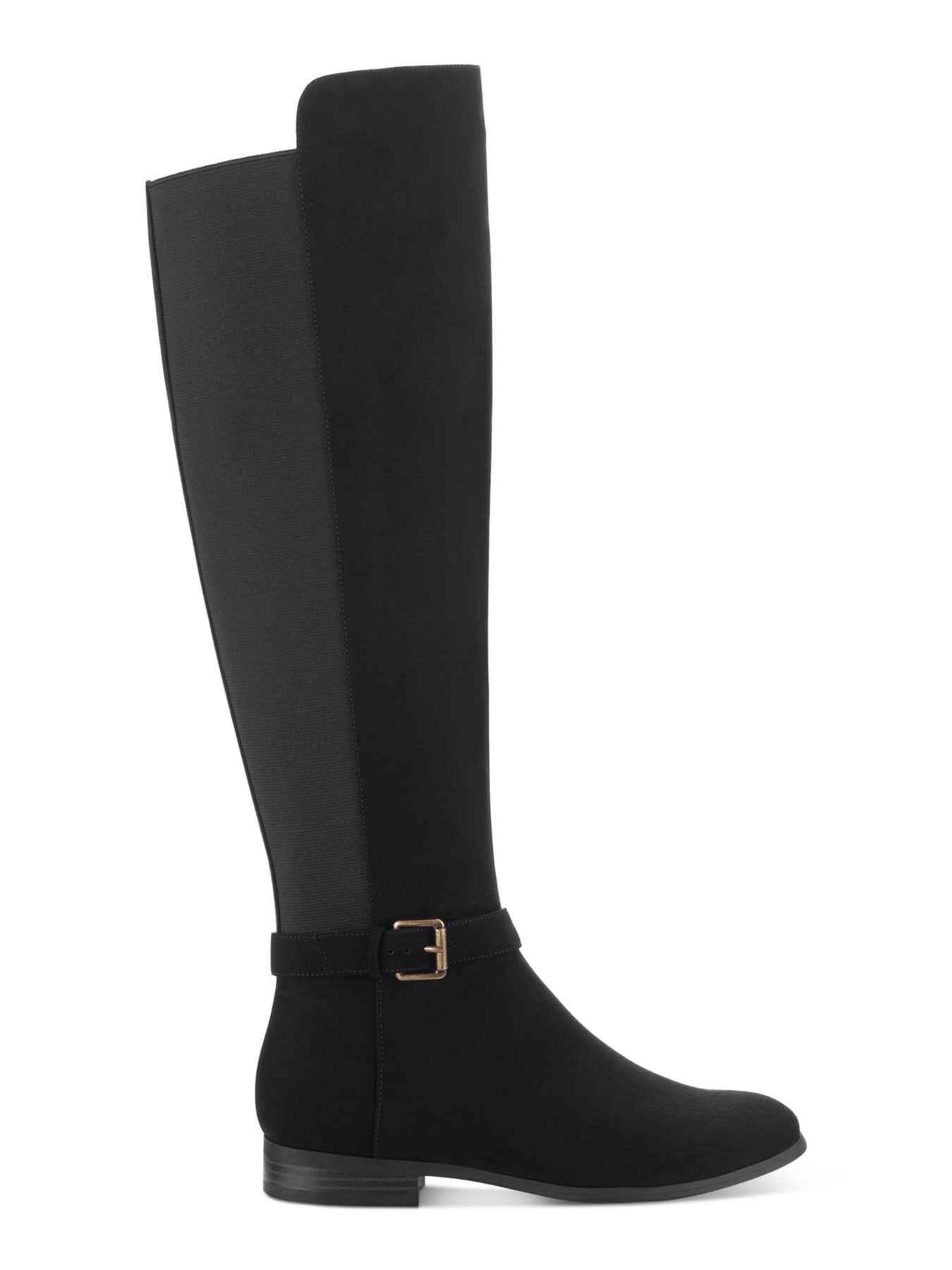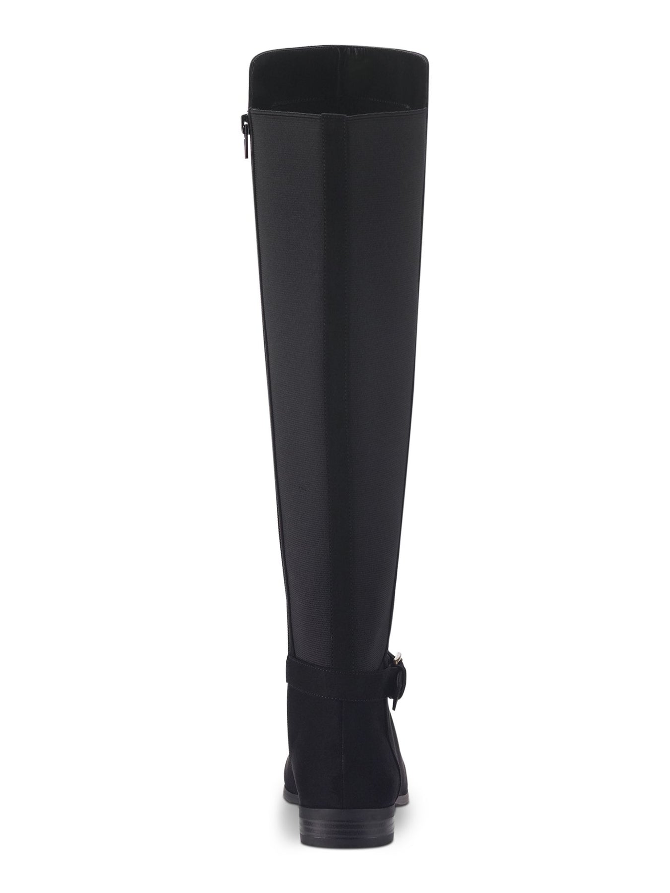 Womens Black Goring Buckle Accent Wide Calf Cushioned Kimmball Round Toe Block Heel Zip-Up Boots Shoes M