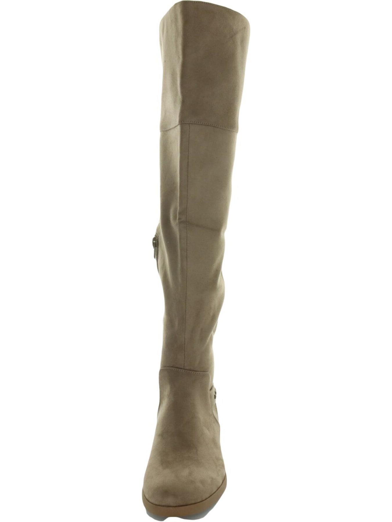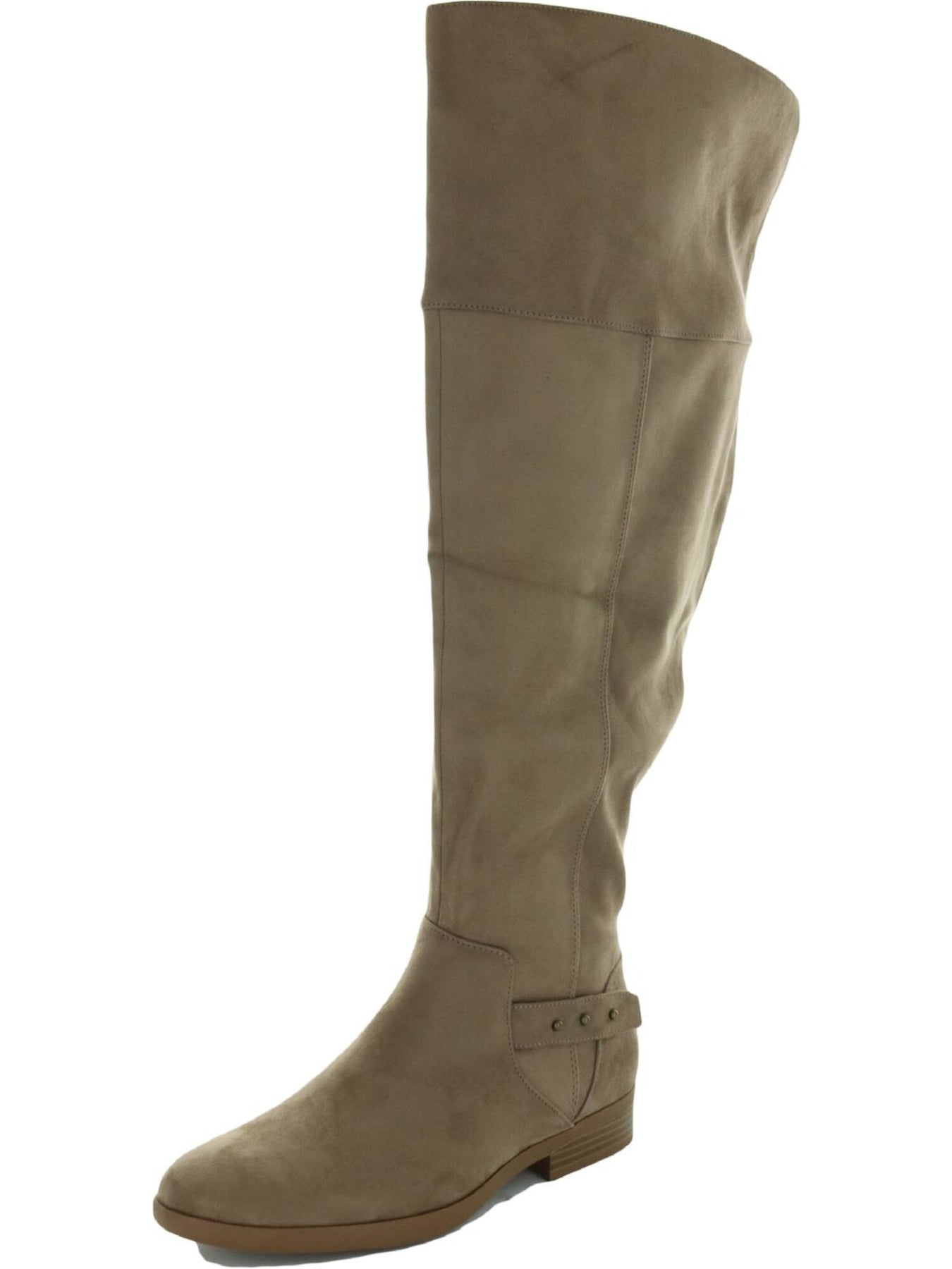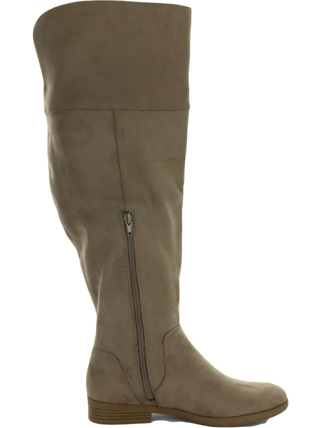 Womens Brown Zipper Wide Calf Slip Resistant Lessah Round Toe Block Heel Boots Shoes M