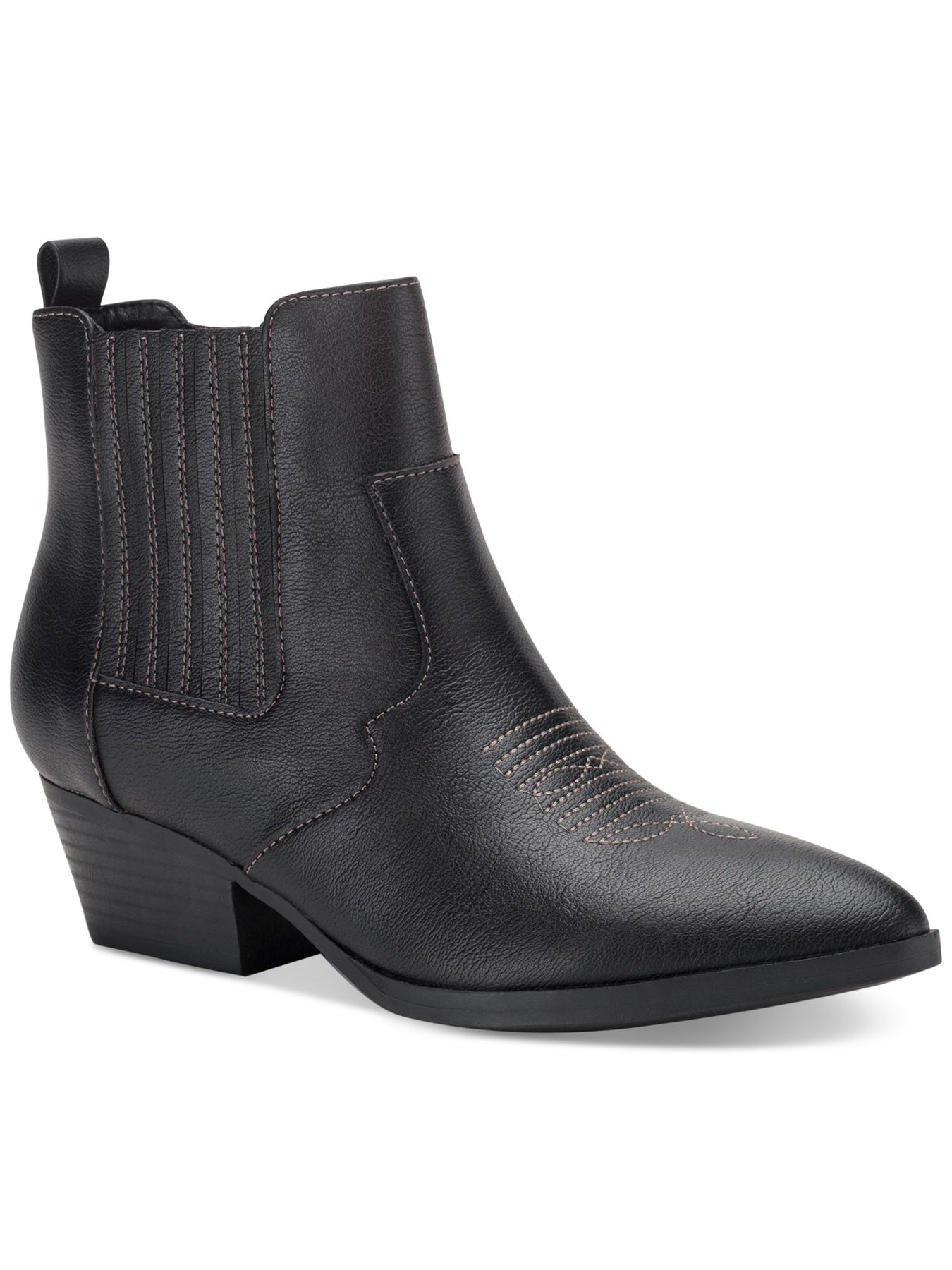 SUN STONE Womens Black Cushioned Goring Grangerr Pointed Toe Block Heel Zip-Up Booties 9 M