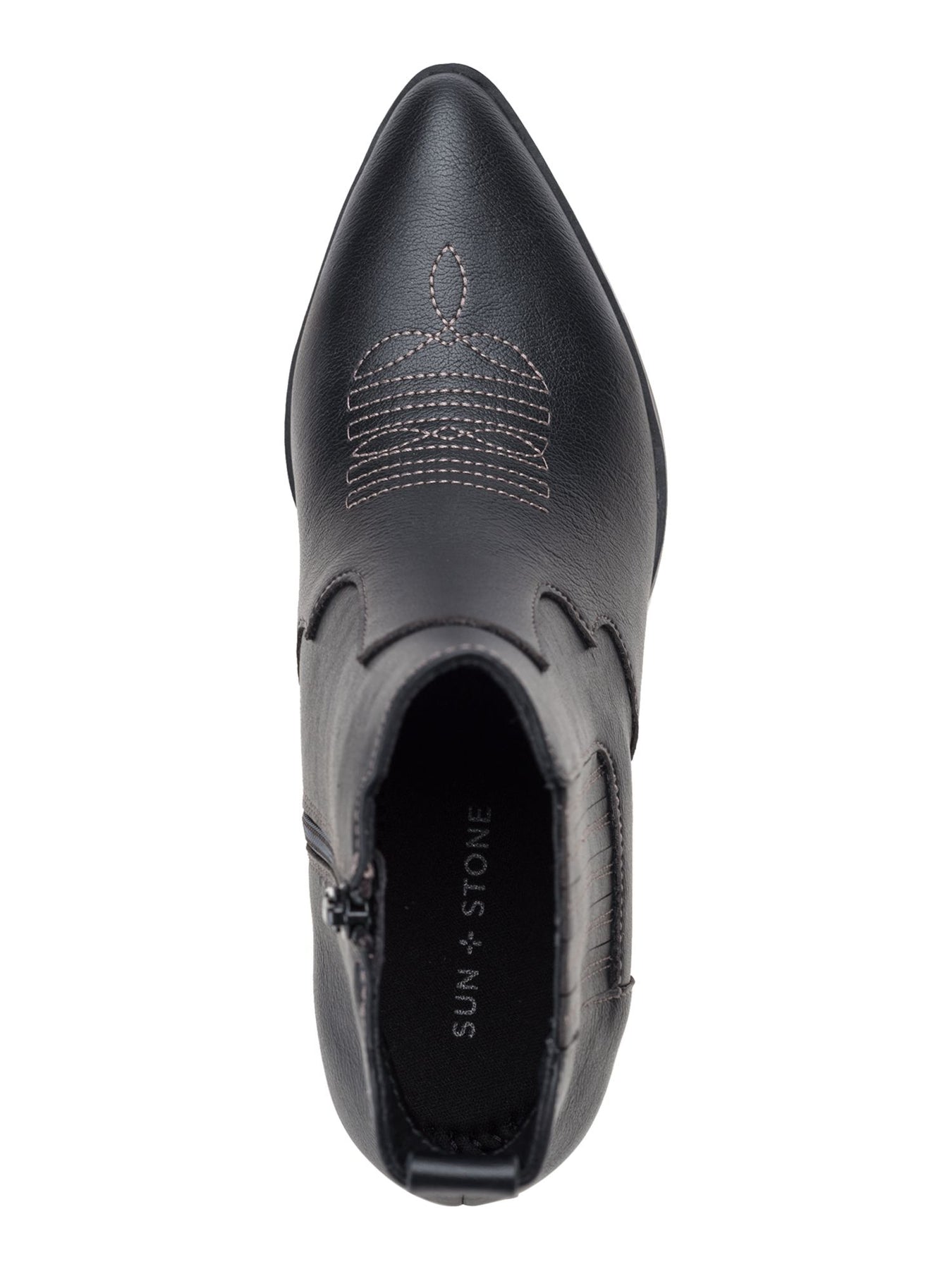 SUN STONE Womens Black Cushioned Goring Grangerr Pointed Toe Block Heel Zip-Up Booties M