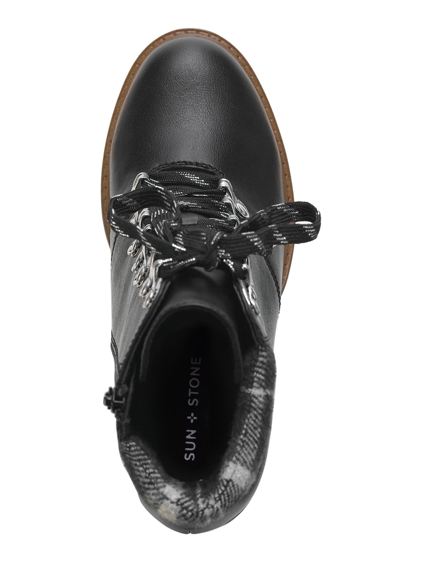 Womens Black Lace Up Padded Cuff Cushioned Lug Sole Octavia Round Toe Block Heel Zip-Up Hiking Boots M
