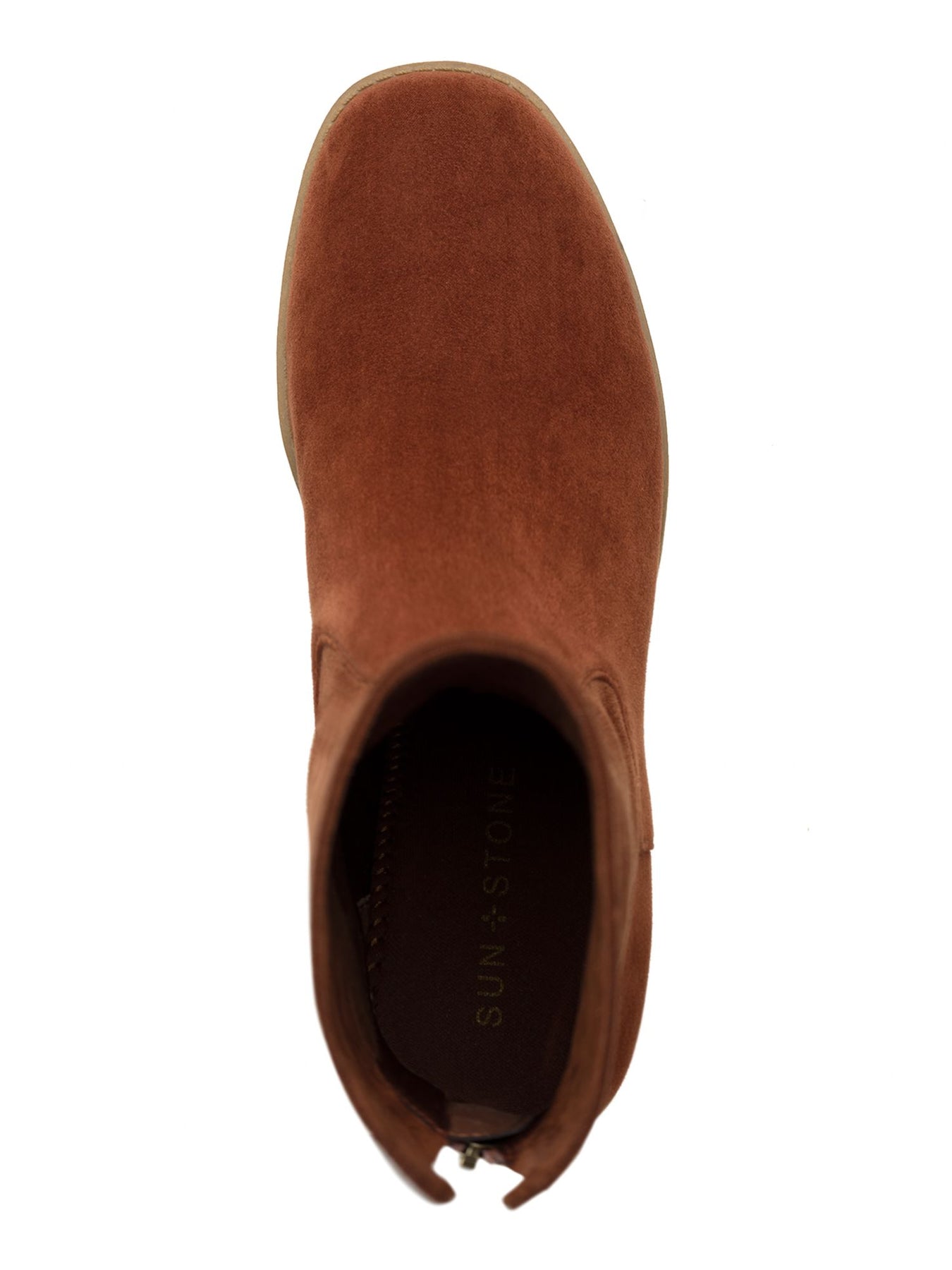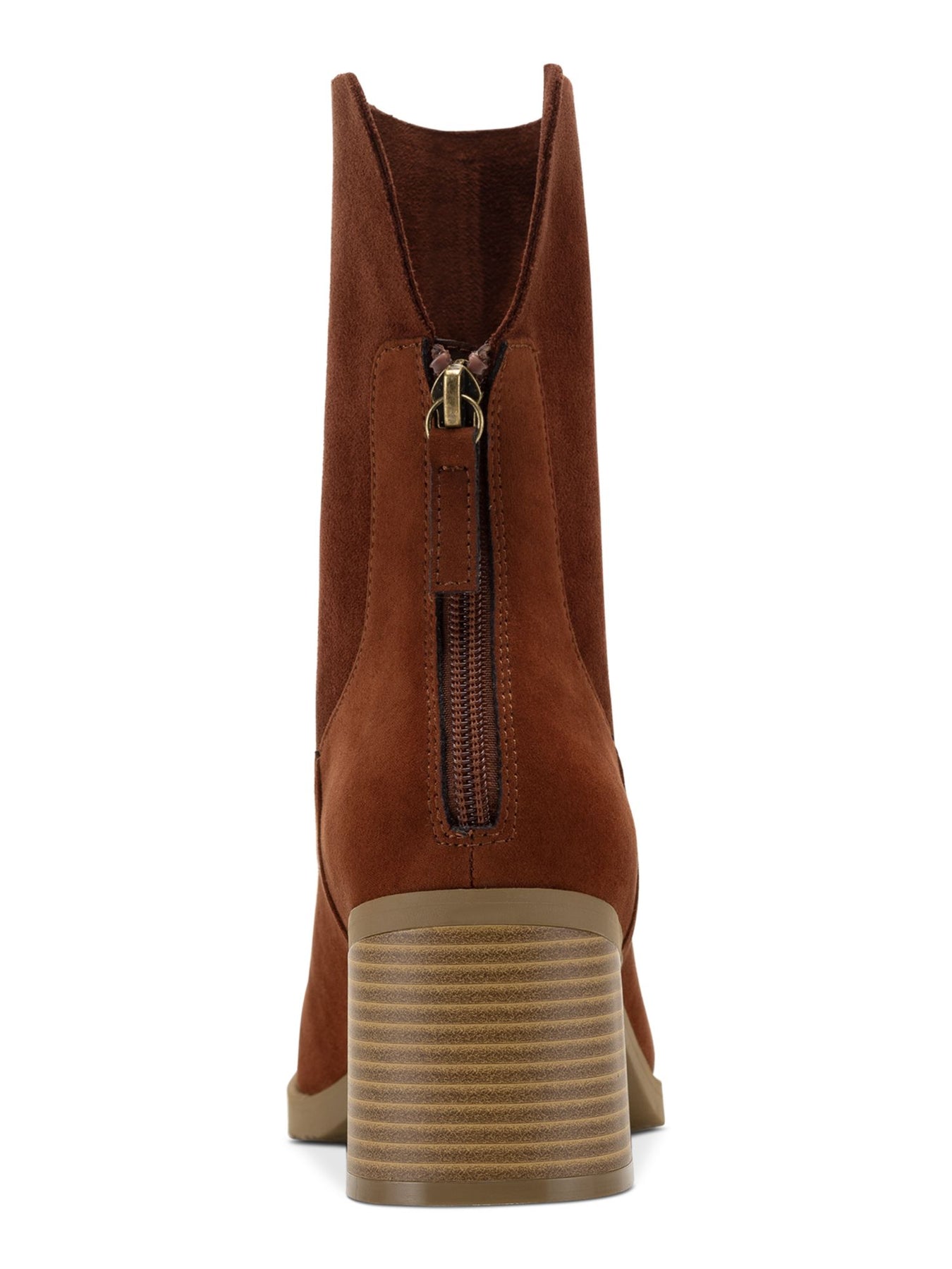 SUN STONE Womens Brown Stretch Cushioned Lyraa Round Toe Block Heel Zip-Up Booties 5 M