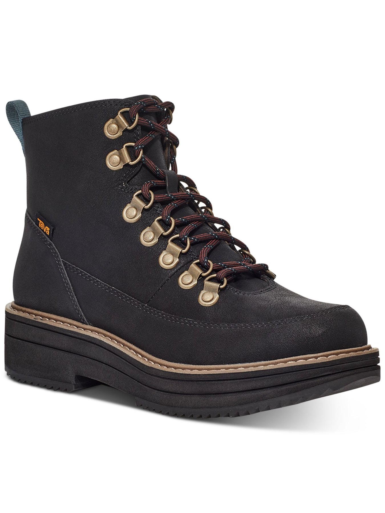 Womens Black 1" Platform Arch Support Cushioned Midform Round Toe Block Heel Lace-Up Booties