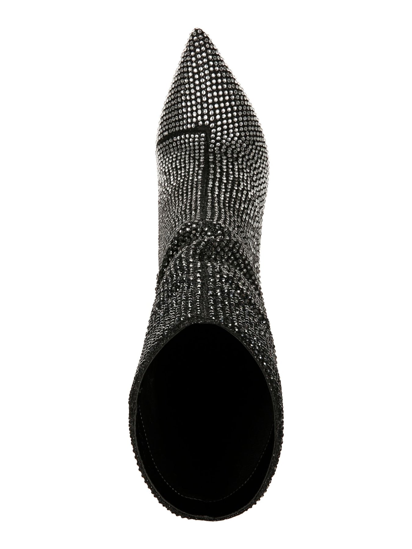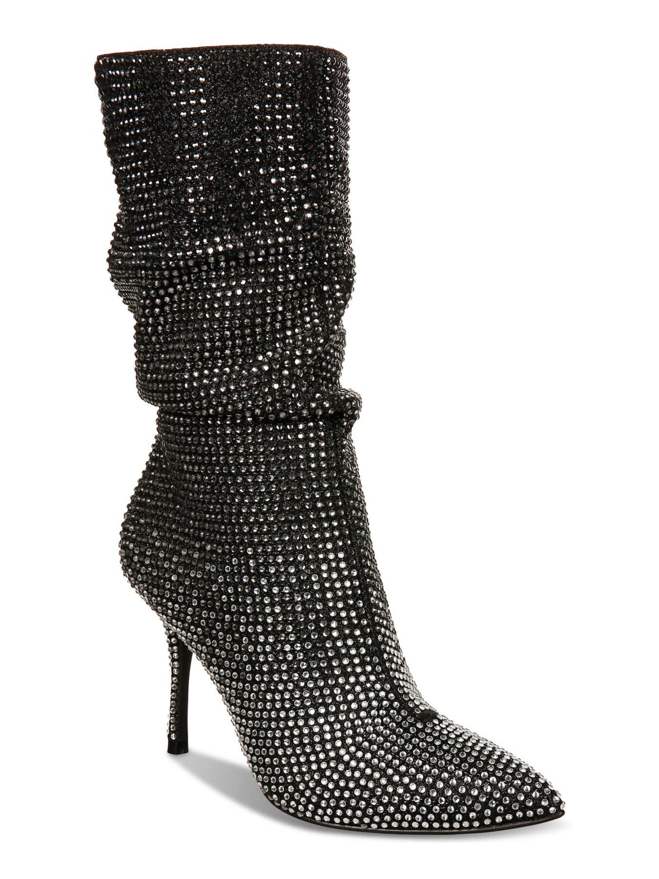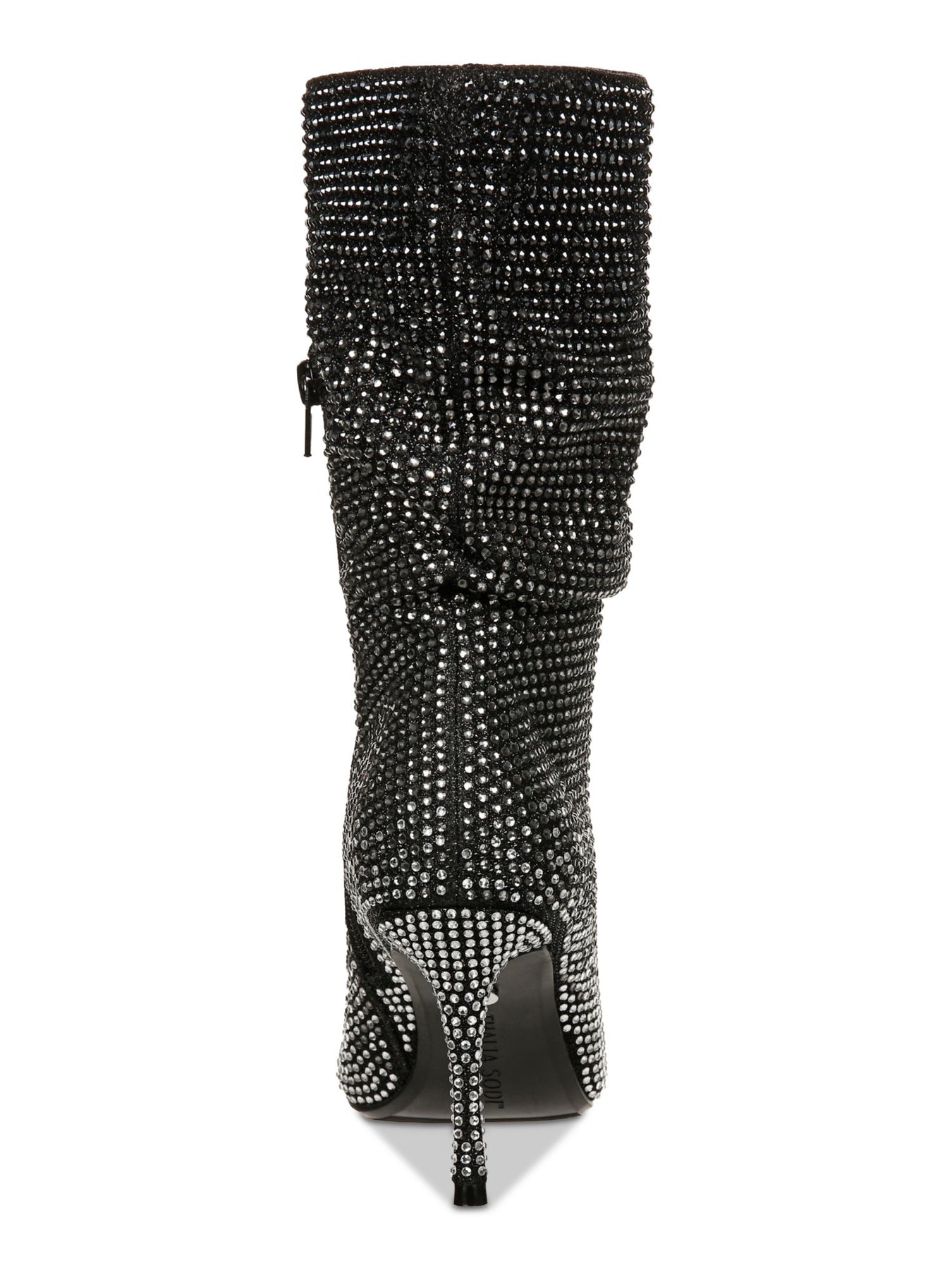 Womens Black Ombre Rhinestone Padded Raquell Pointed Toe Stiletto Zip-Up Dress Slouch Boot M