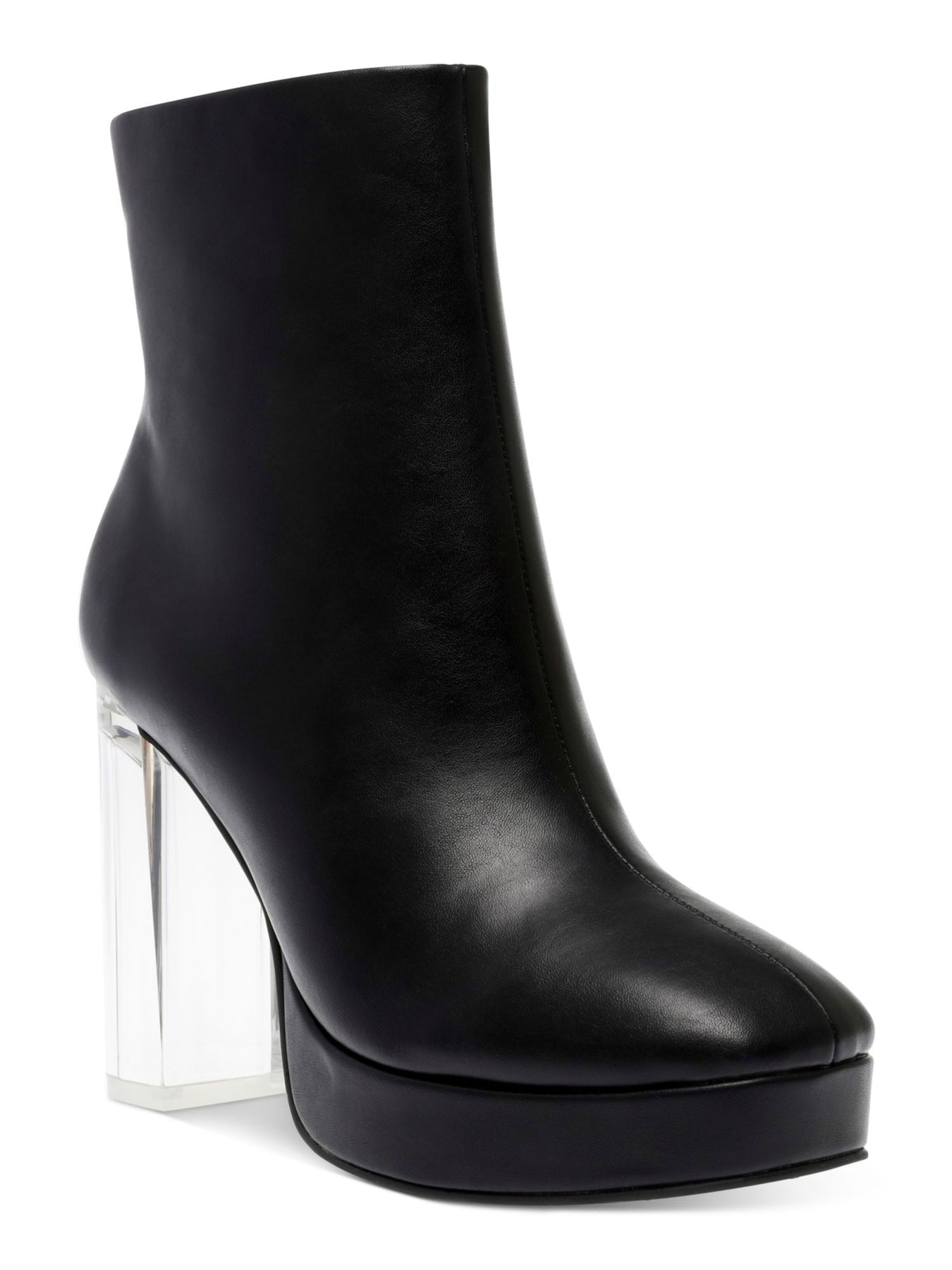 Womens Black 1" Platform Cushioned Slip Resistant Charlee Square Toe Zip-Up Dress Heeled Boots M