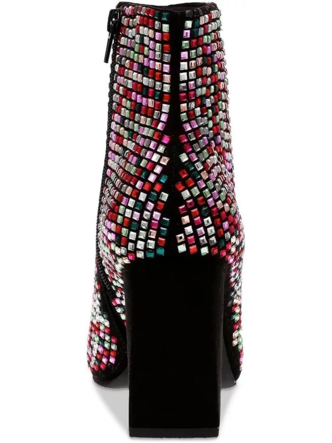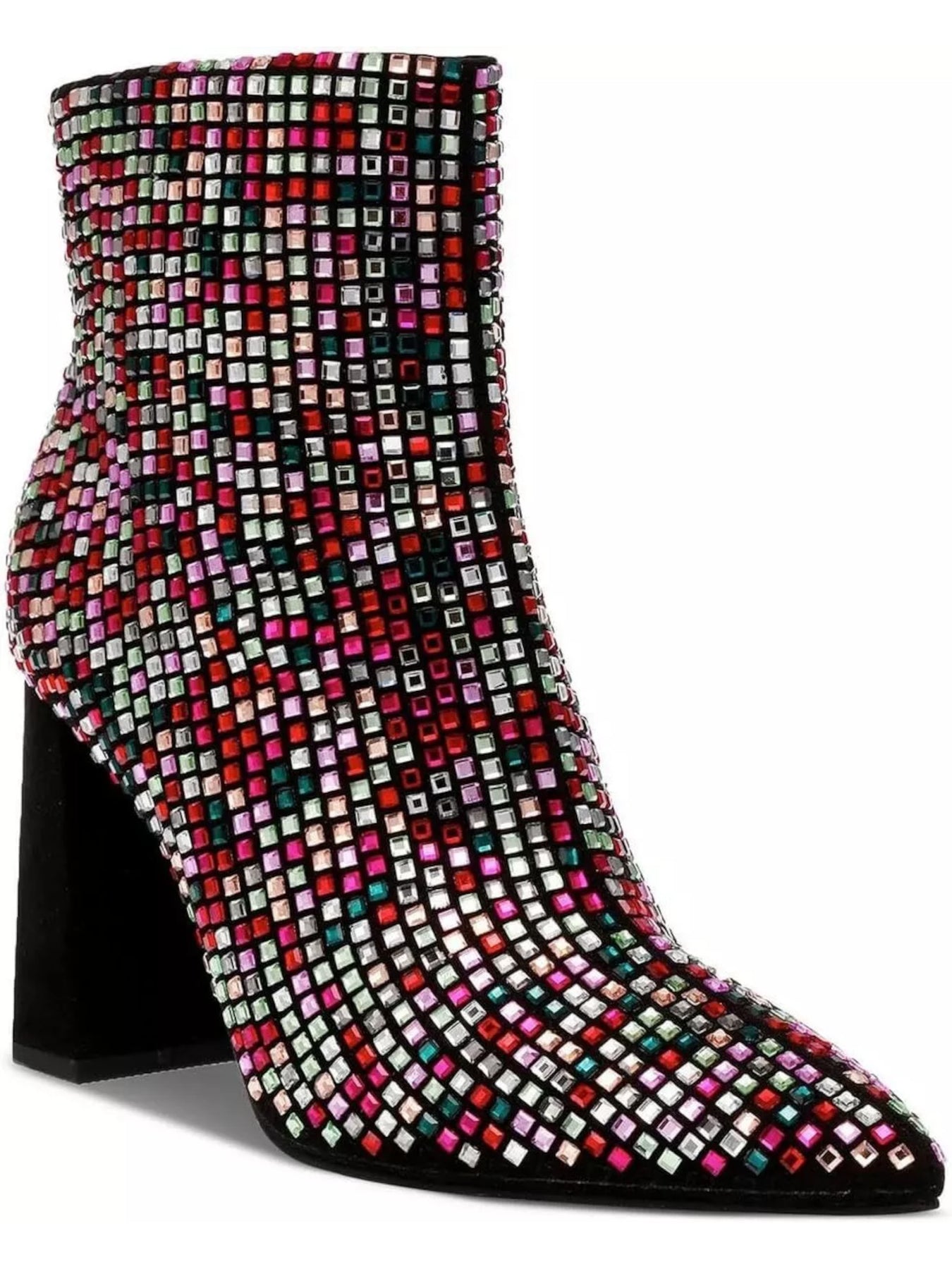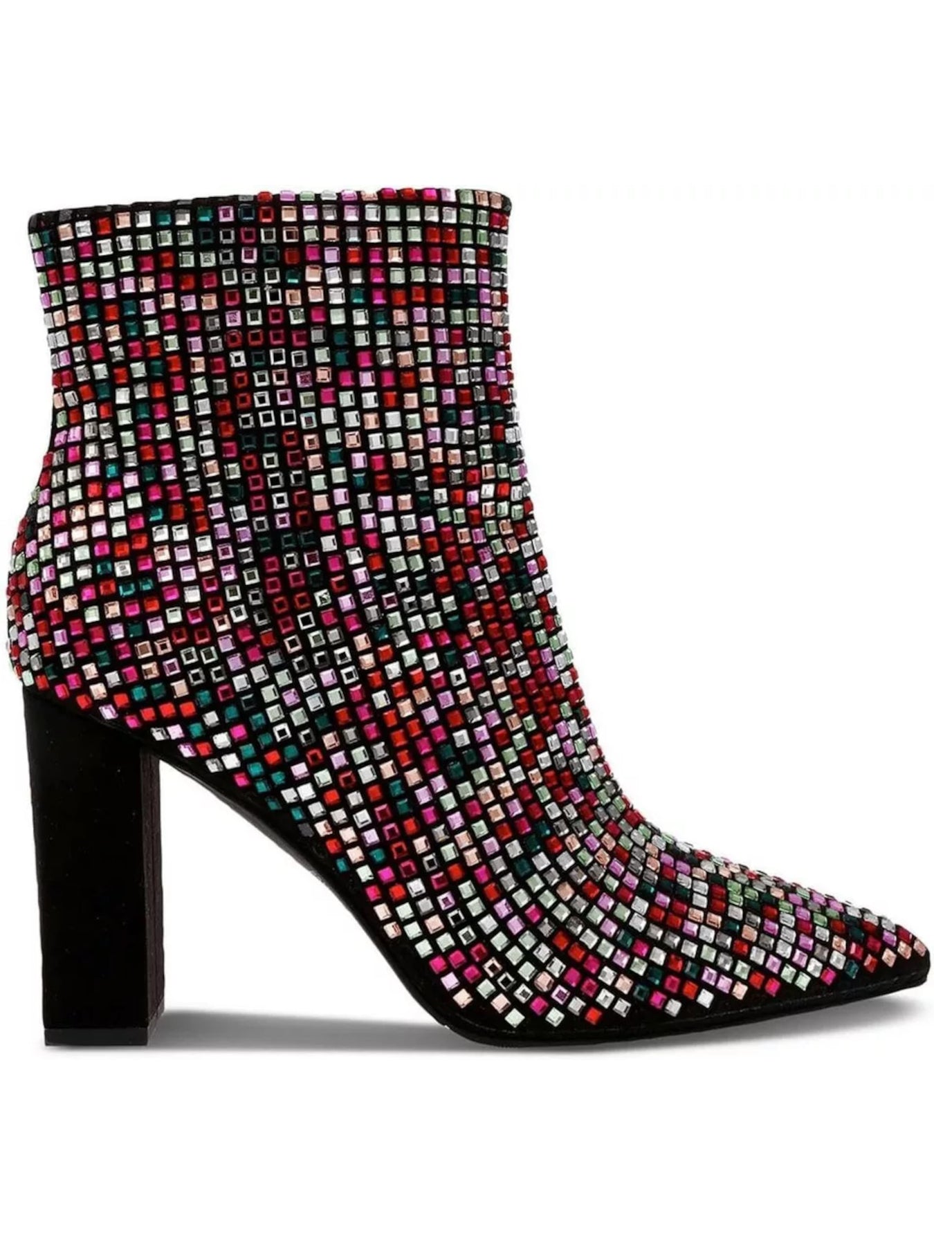 Womens Black Geometric Rhinestone Padded Ingridd Pointed Toe Block Heel Zip-Up Dress Booties M