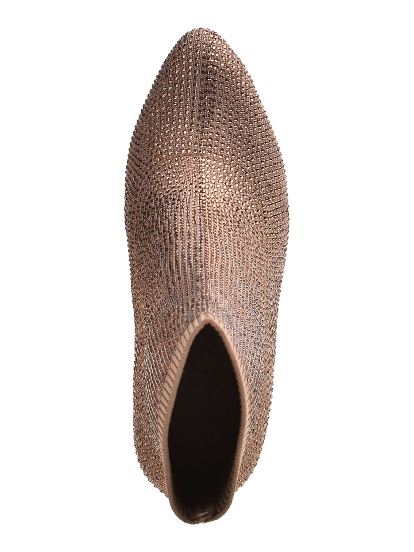 Womens Brown Rhinestone Stretch Baybe Pointed Toe Block Heel Booties M