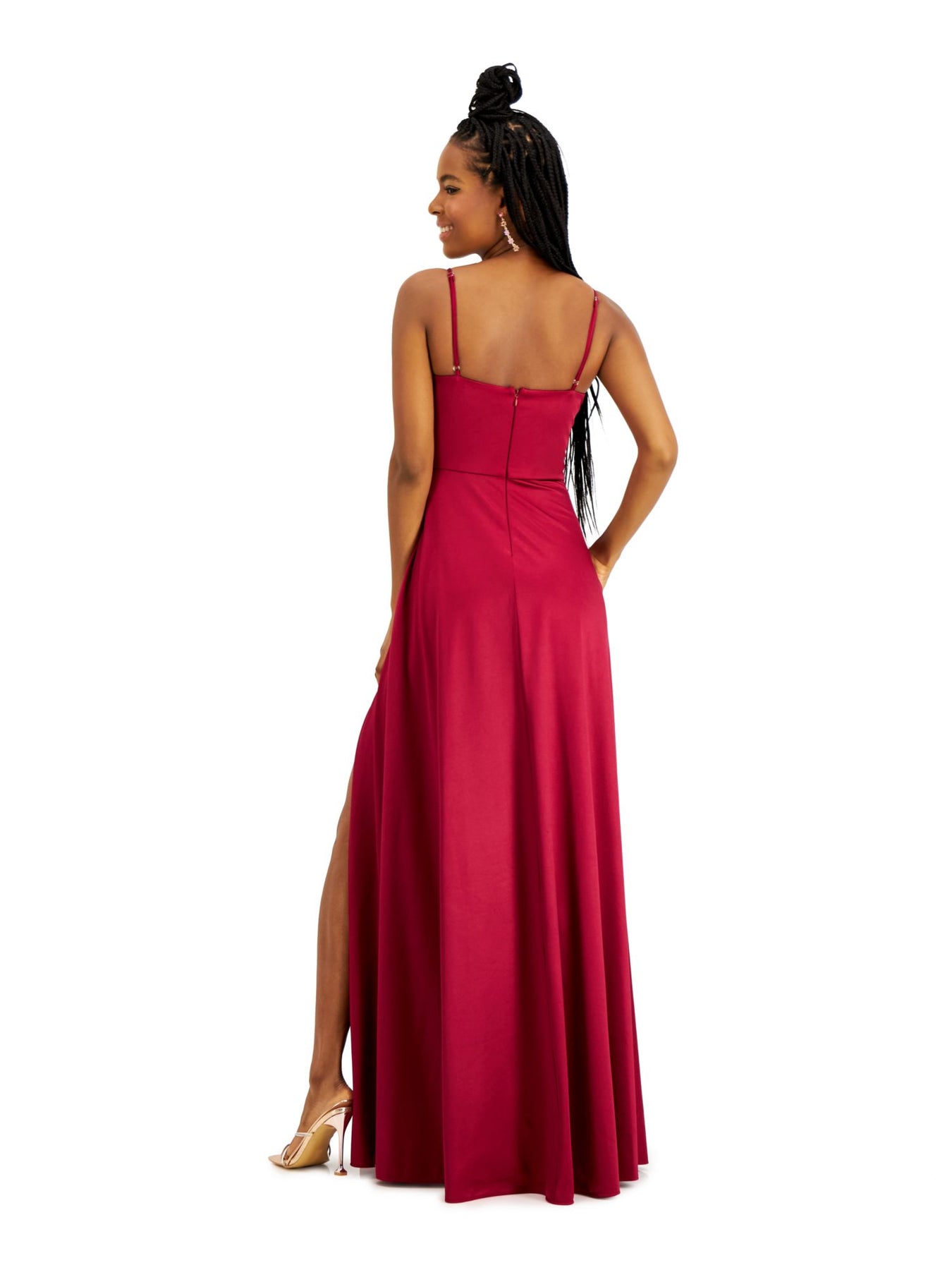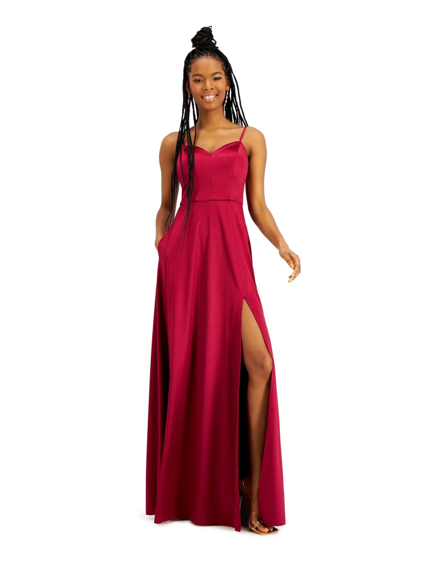 CITY STUDIO Womens Burgundy Slitted Spaghetti Strap Full-Length Formal Fit + Flare Dress
