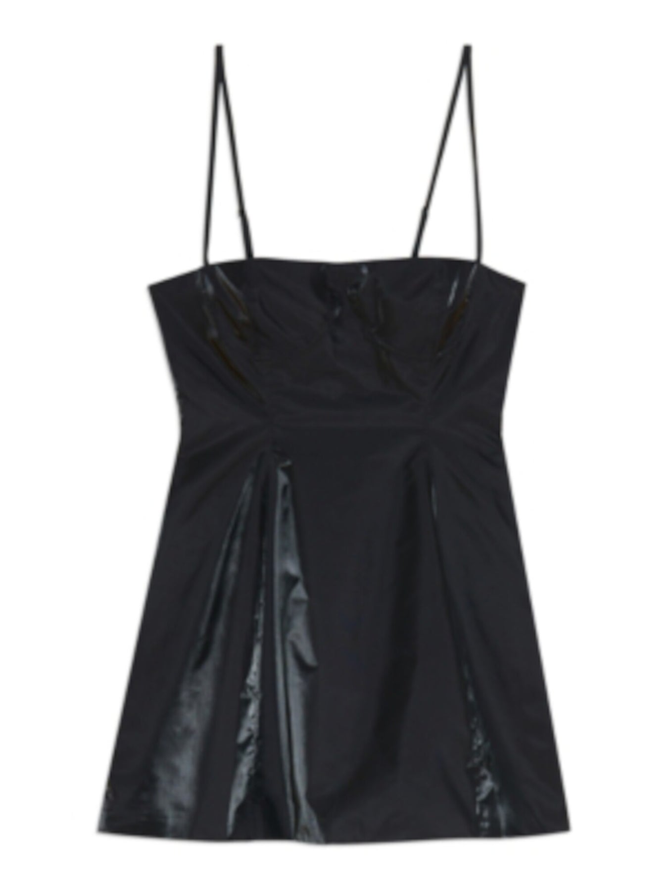 DANIELLE BERNSTEIN Womens Zippered Shiny Spaghetti Strap Square Neck Micro Mini Fit + Flare Dress