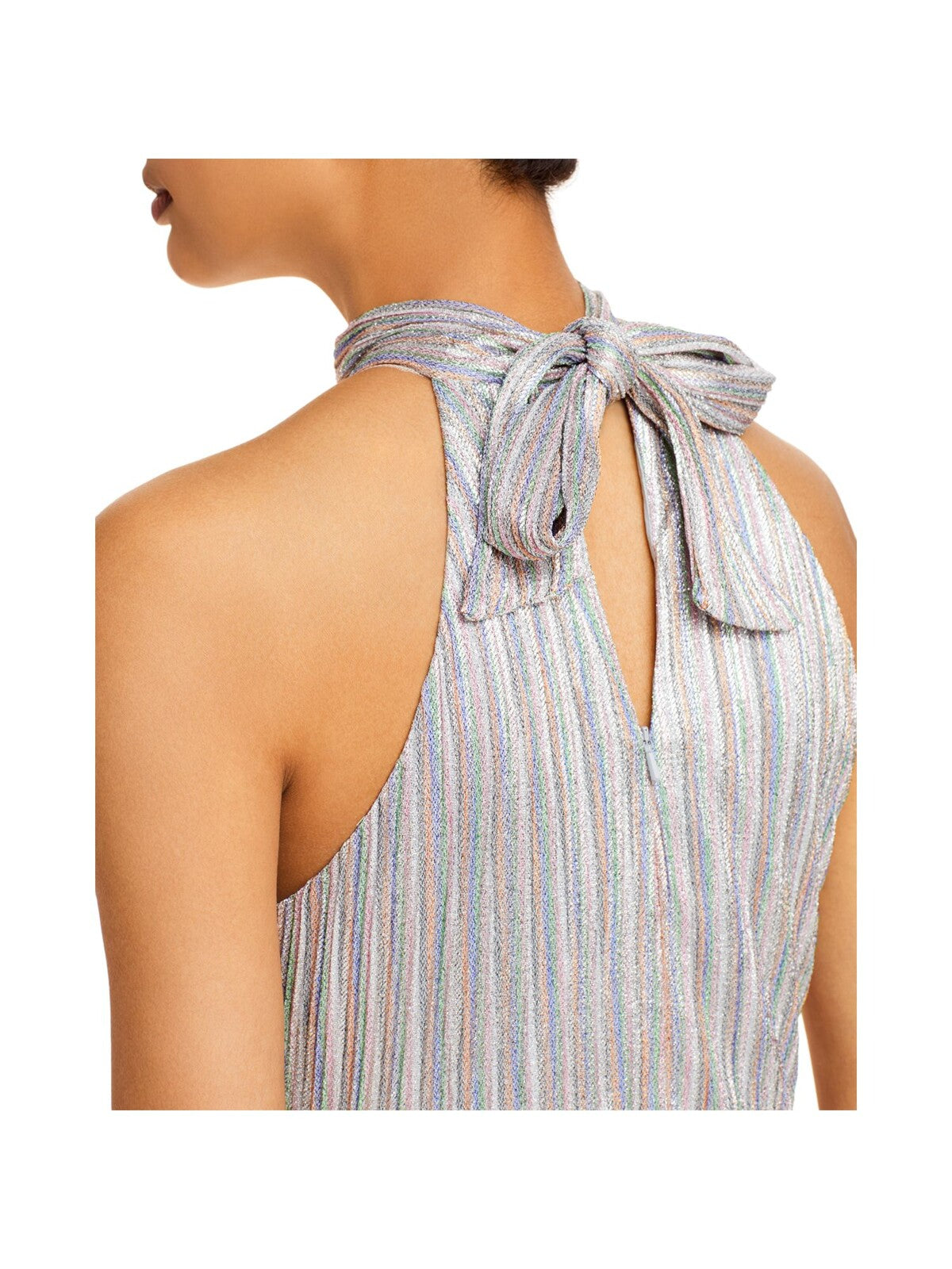 Womens Metallic Striped Sleeveless Halter Full-Length Evening Gown Dress