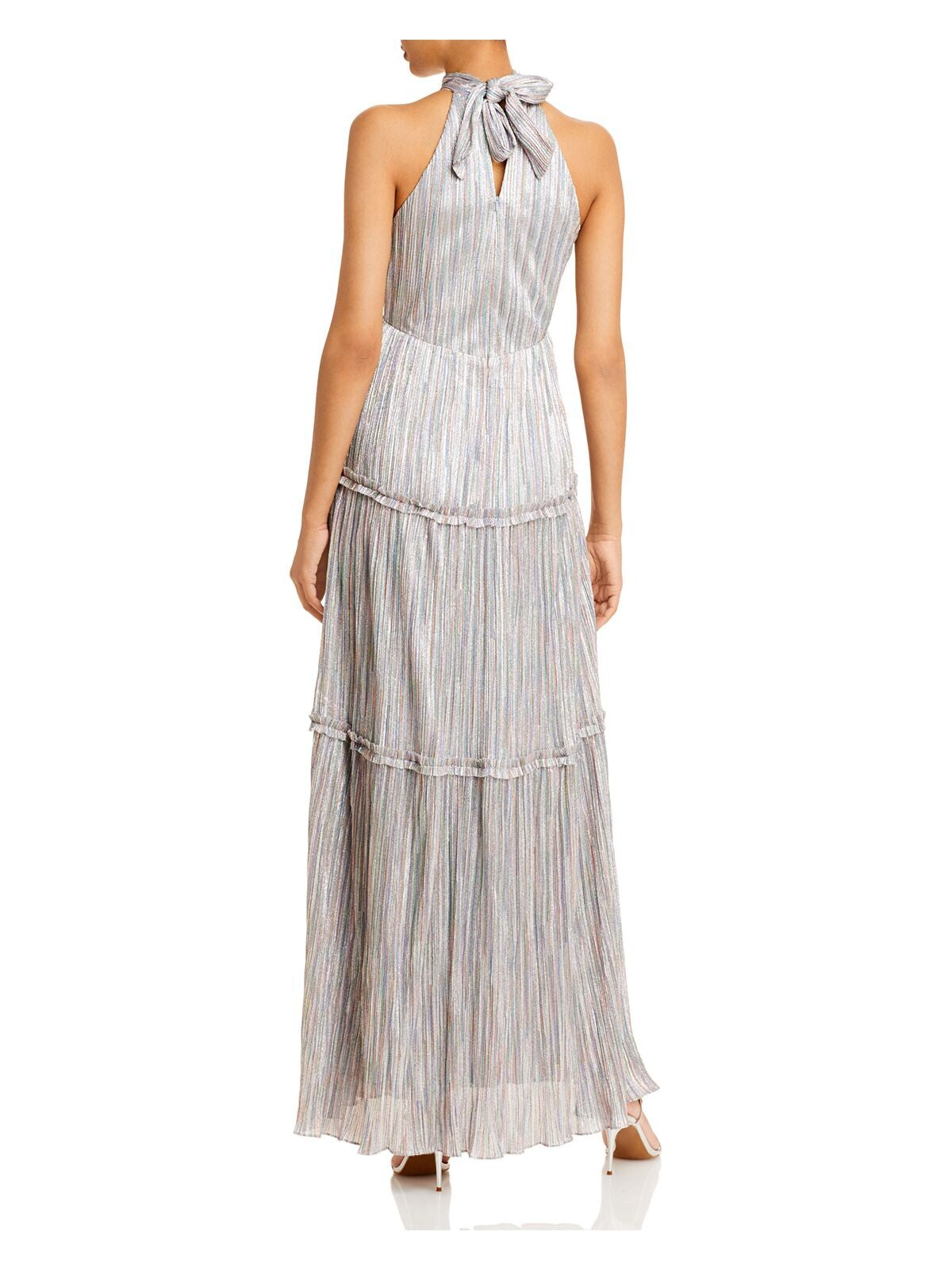 AQUA FORMAL Womens Silver Metallic Textured Tie Neck Striped Sleeveless Halter Full-Length Evening Gown Dress 10