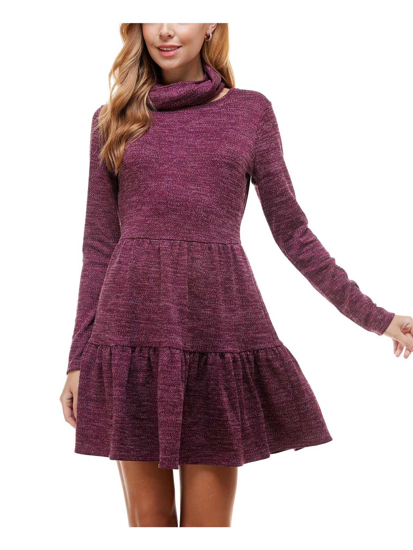 Womens Ruffled Heather Long Sleeve Crew Neck Short Fit + Flare Dress