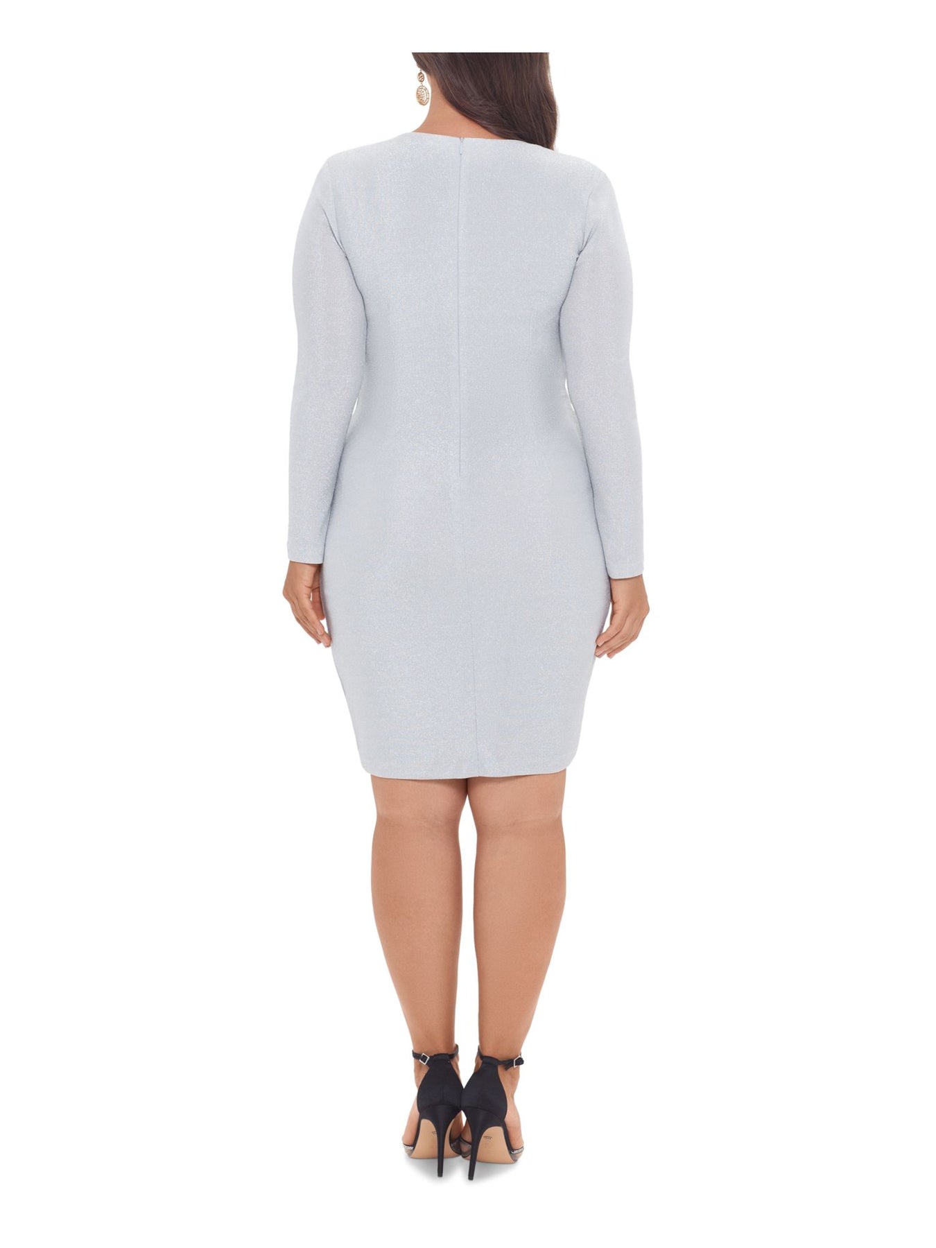 BETSY & ADAM Womens Silver Gathered Long Sleeve Knee Length Formal Faux Wrap Dress Plus 18W