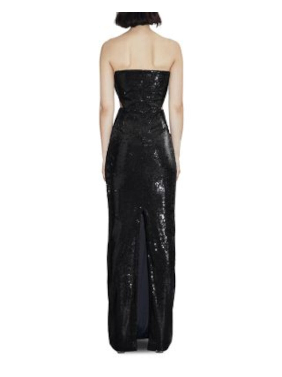 Womens Black Cut Out Zippered Back Slit Lined Sleeveless Strapless Full-Length Cocktail Gown Dress