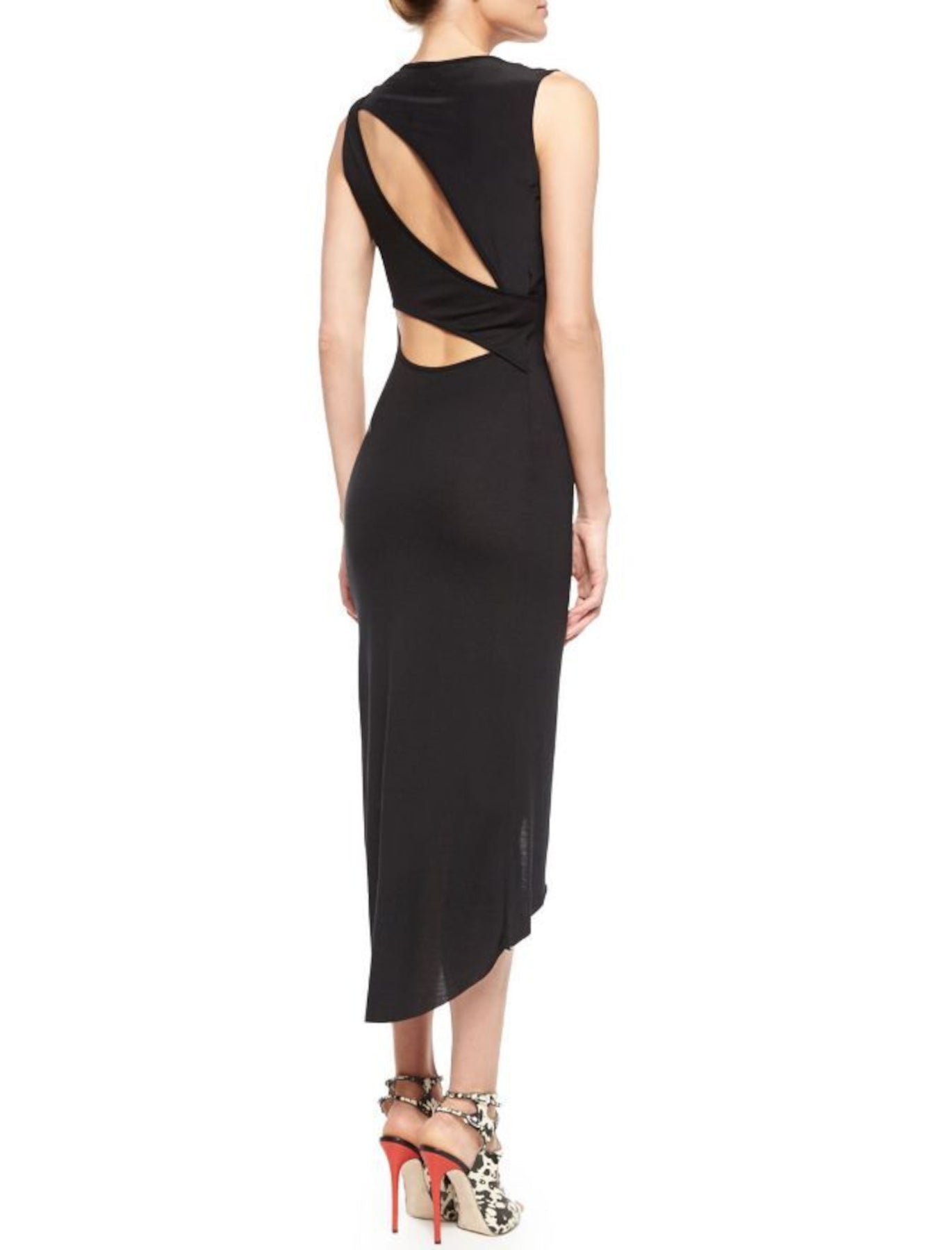 HAUTE HIPPIE Womens Black Cut Out Sheer Sleeveless Round Neck Midi Party Hi-Lo Dress M
