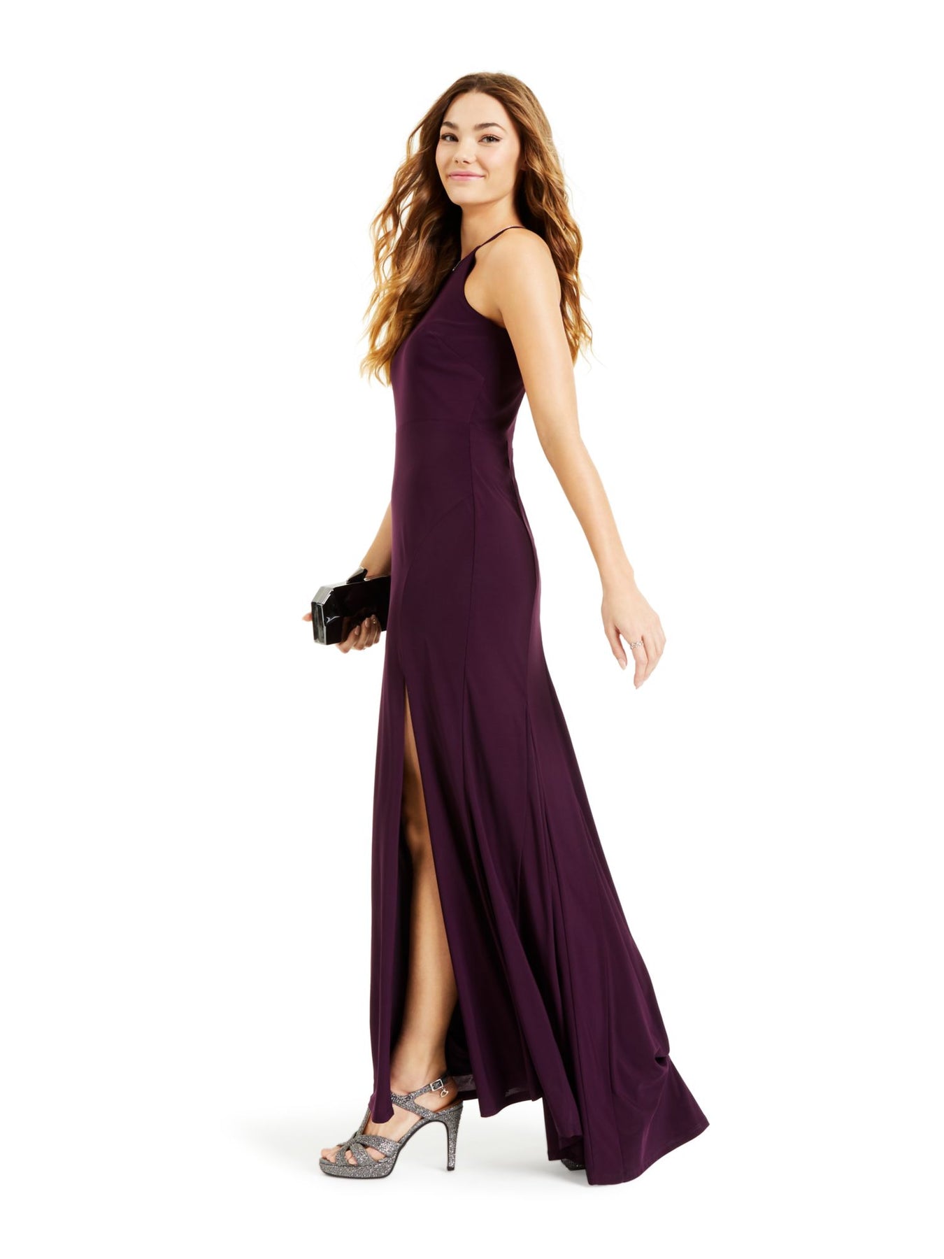 JUMP APPAREL Womens Purple Slitted Halter Maxi Evening Dress 1\2