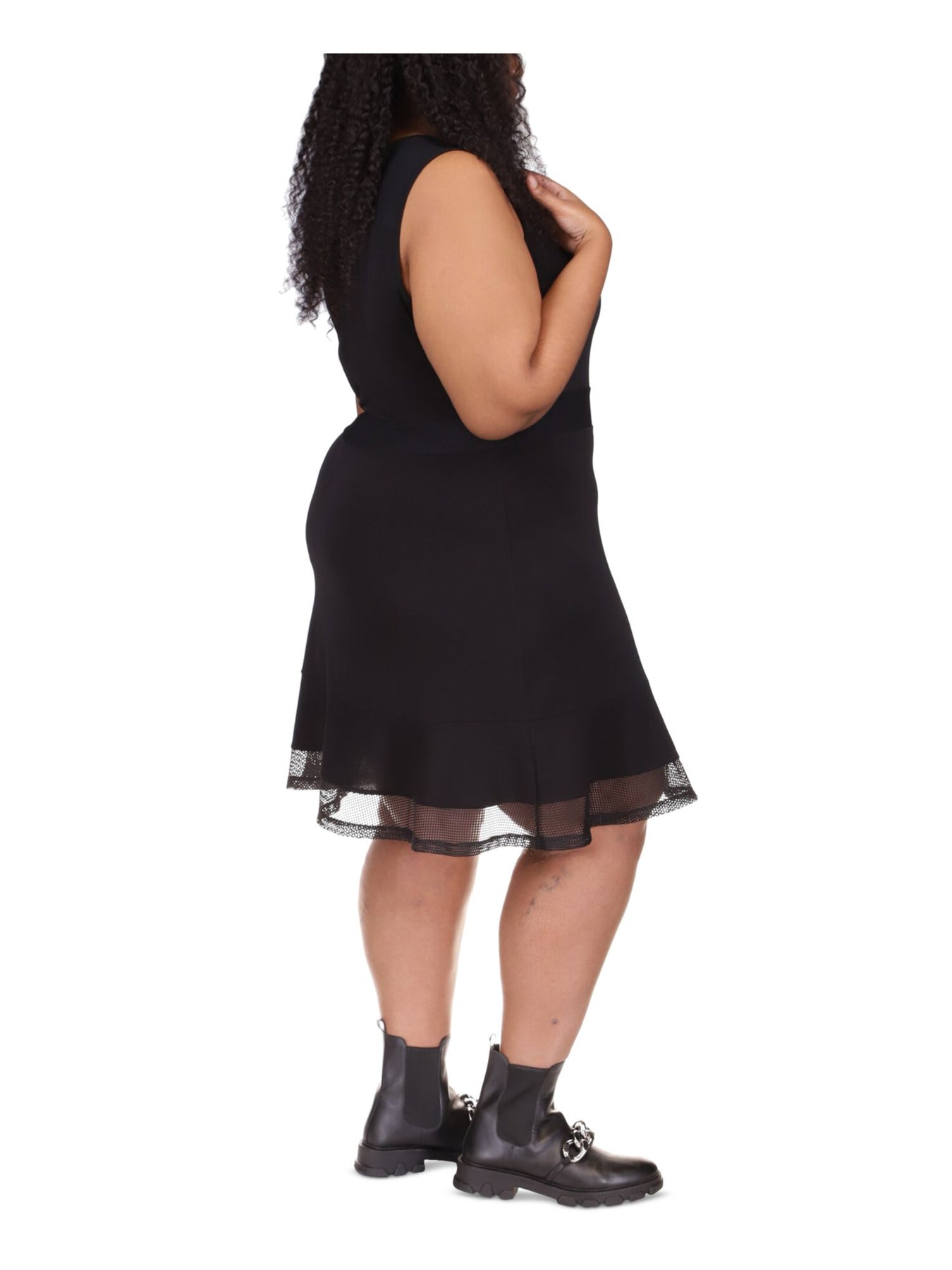 Womens Black Zippered Mesh Sleeveless Round Neck Above The Knee Fit + Flare Dress