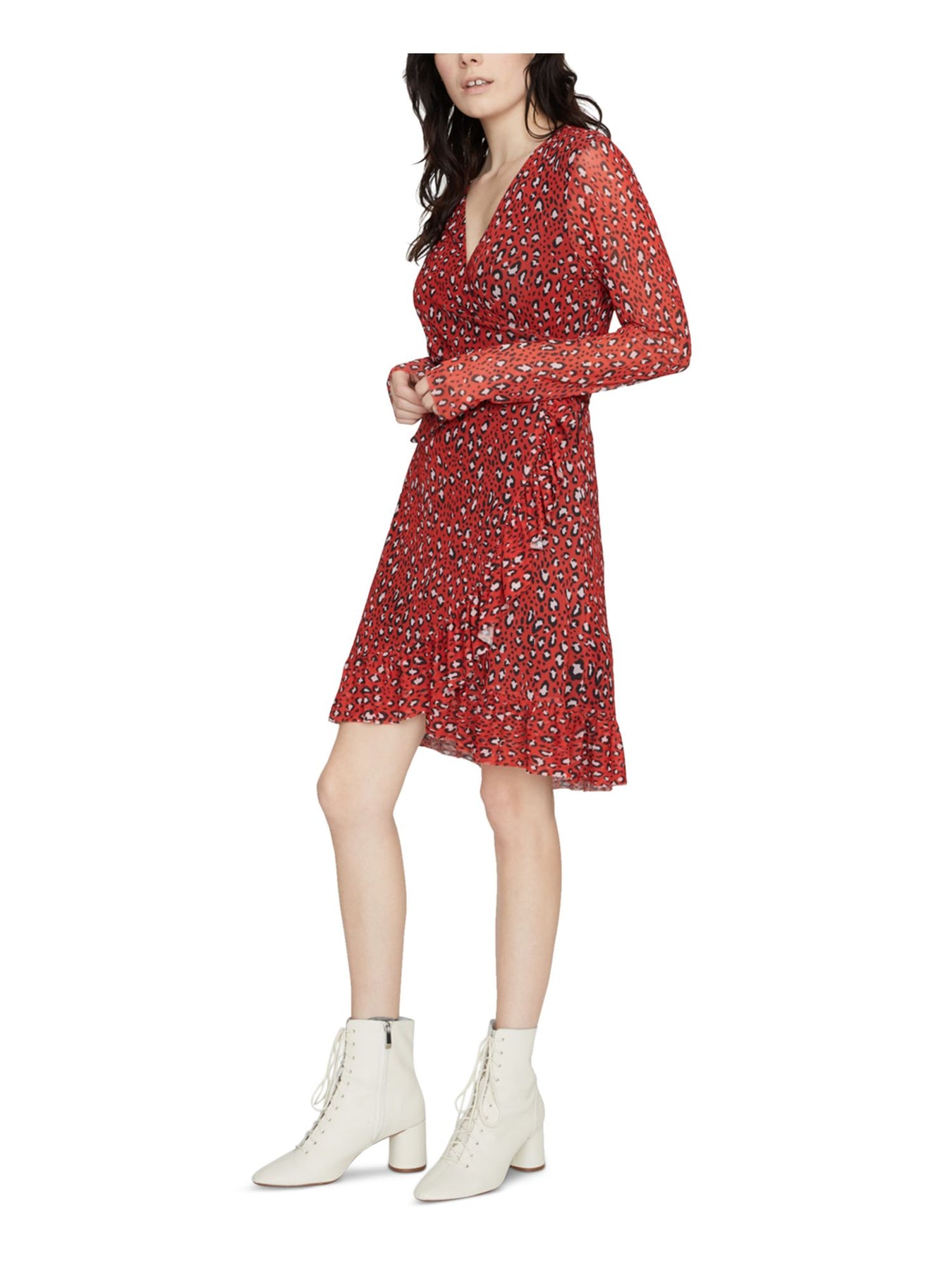 SANCTUARY Womens Red Animal Print Long Sleeve Knee Length Wrap Dress