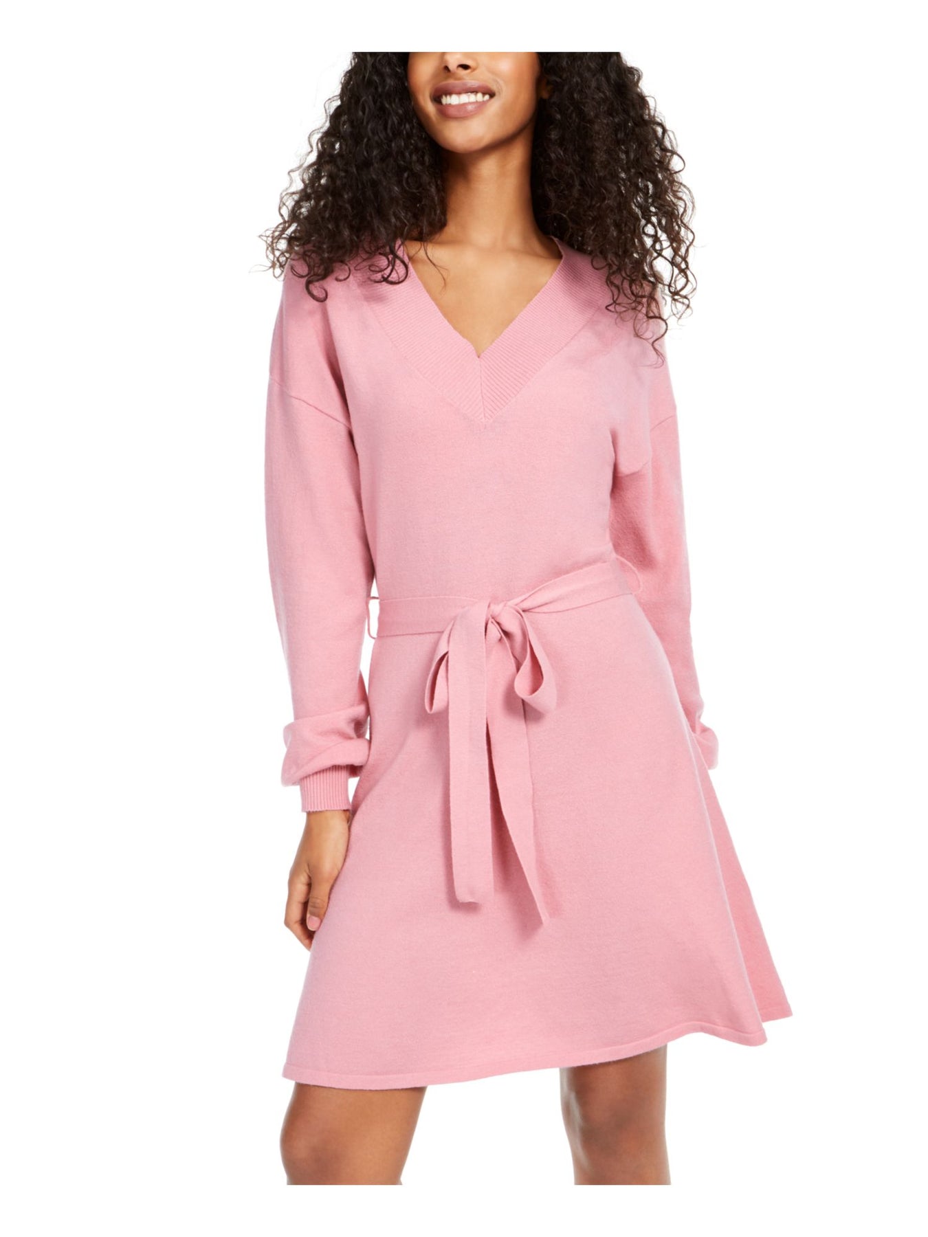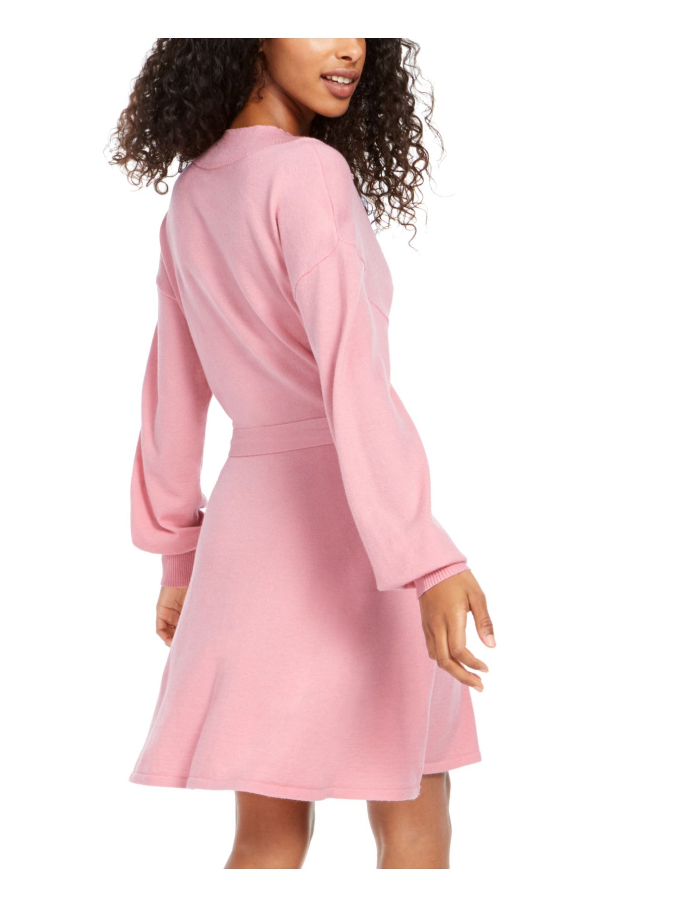 SEQUIN HEARTS Womens Sheath Short Dress Pink Tie Front Long Sleeve V Neck Juniors S