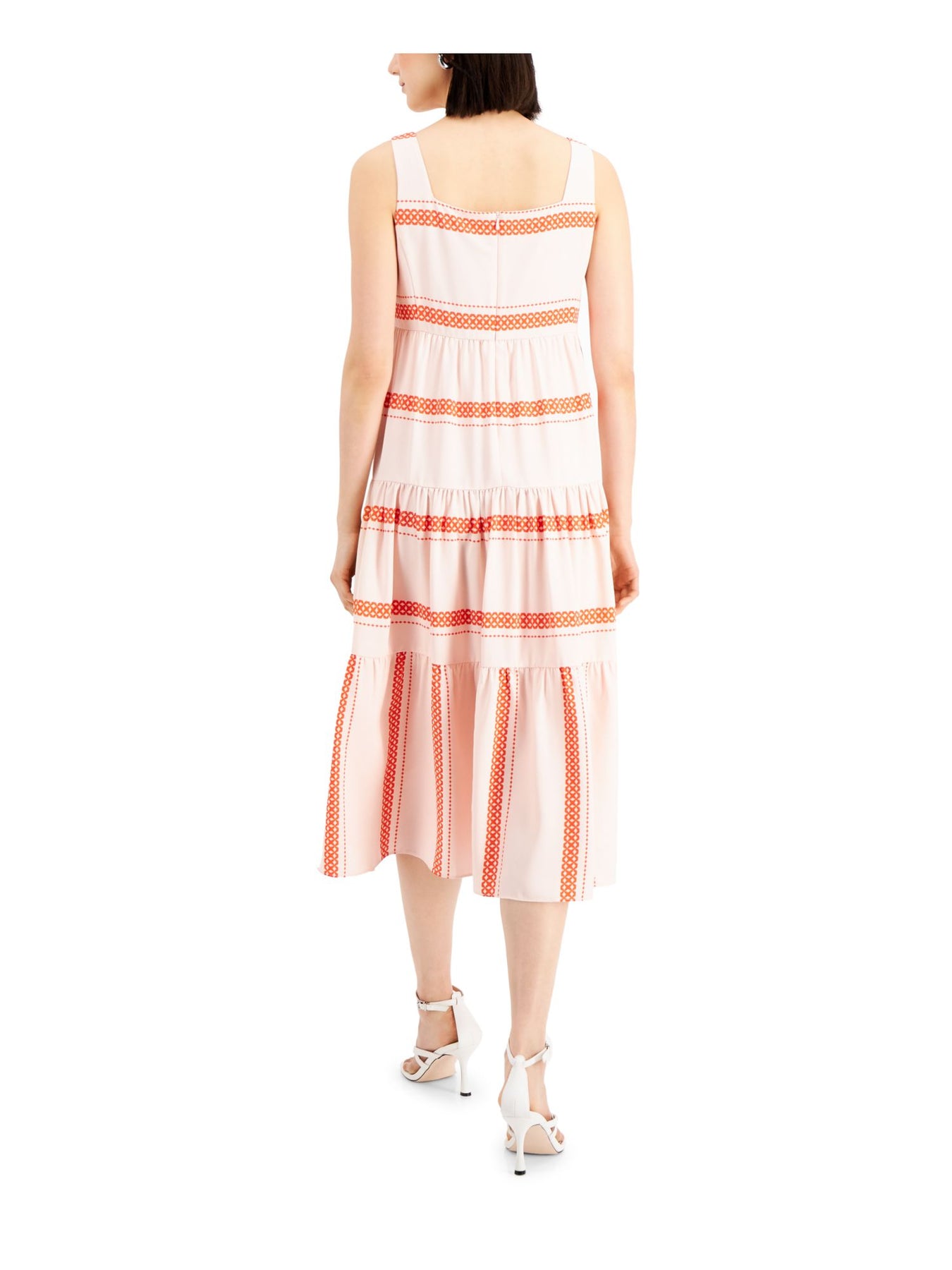 TAYLOR Womens Pink Zippered Ruffled Tiered With Facemask Printed Sleeveless Square Neck Midi Party Baby Doll Dress Petites 2P