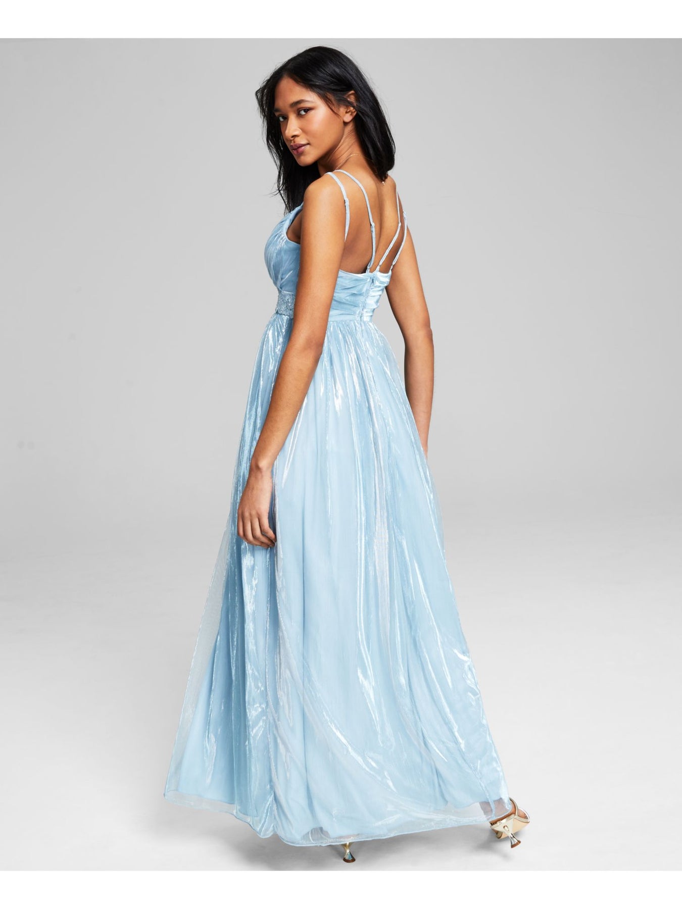 TEEZE ME Womens Light Blue Embroidered Beaded Zippered Lined Sleeveless V Neck Full-Length Formal Gown Dress Juniors 7\8