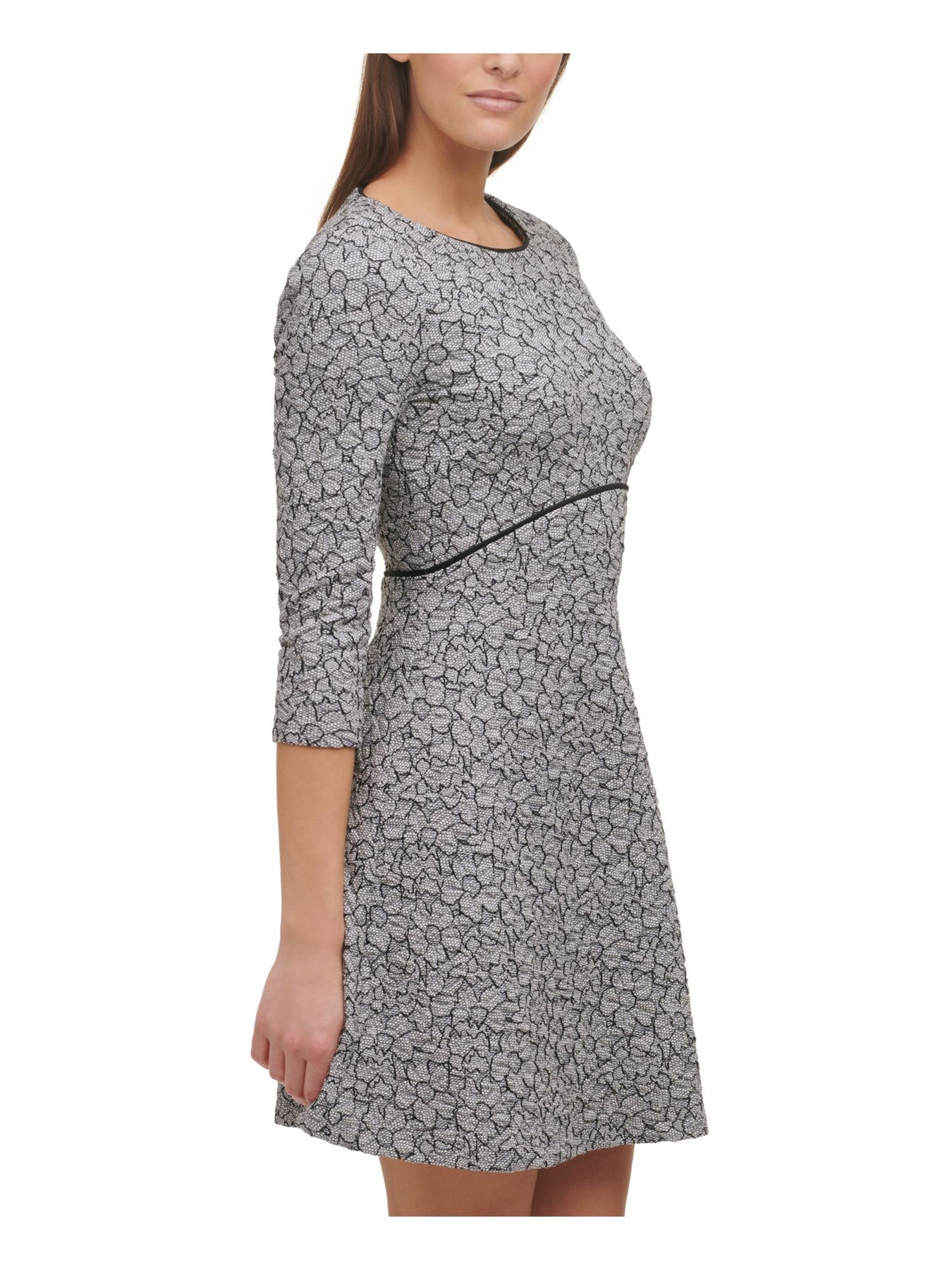 TOMMY HILFIGER Womens Gray 3/4 Sleeve Round Neck Above The Knee Fit + Flare Dress Petites 10P