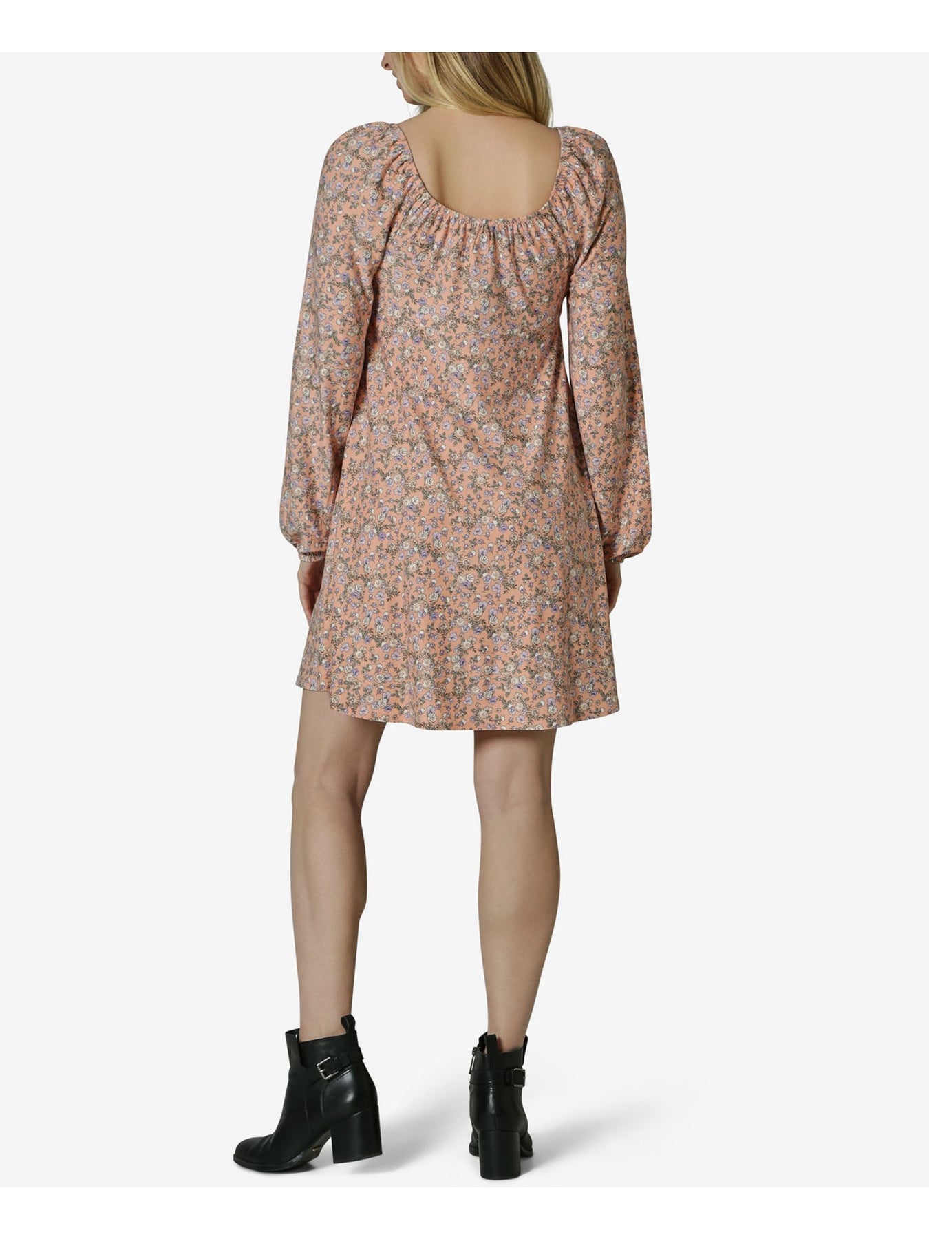 ULTRA FLIRT Womens Ruched Floral Raglan Sleeve Scoop Neck Short Baby Doll Dress