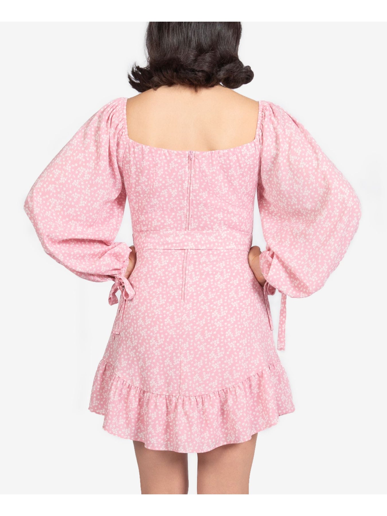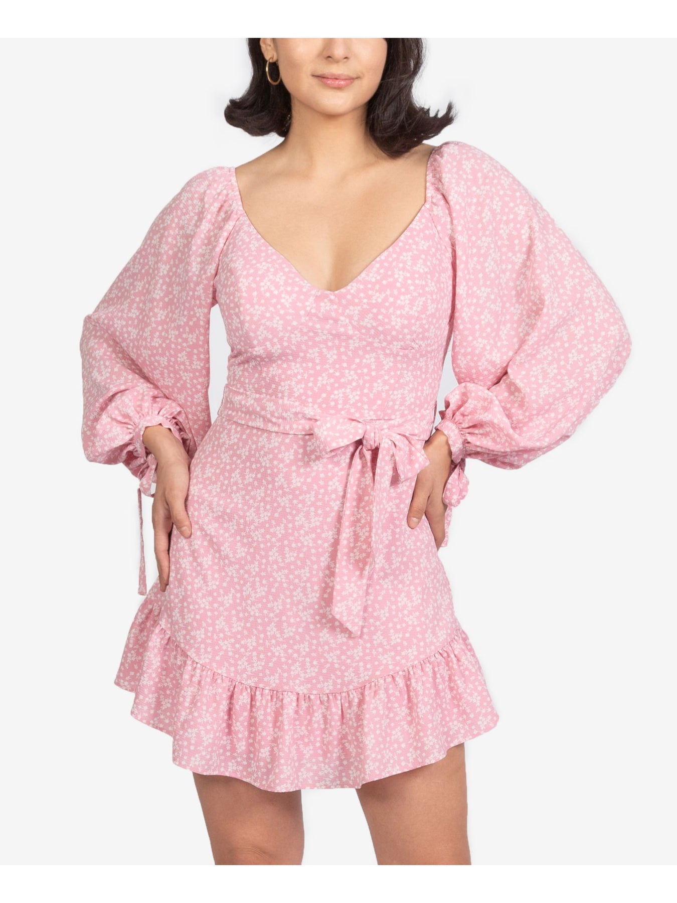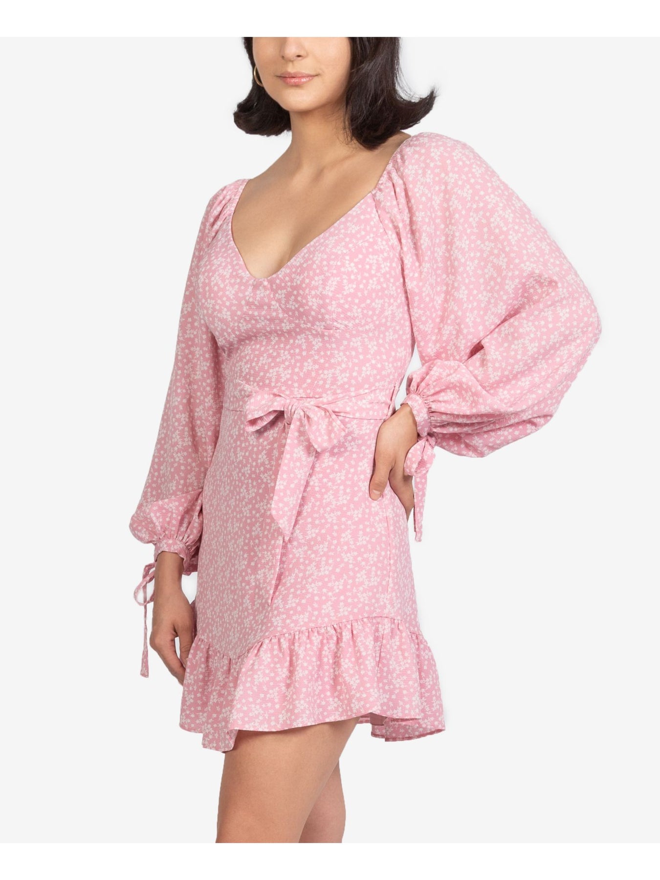B DARLIN Womens Pink Ruffled Floral Balloon Sleeve V Neck Mini Sheath Dress 11\12