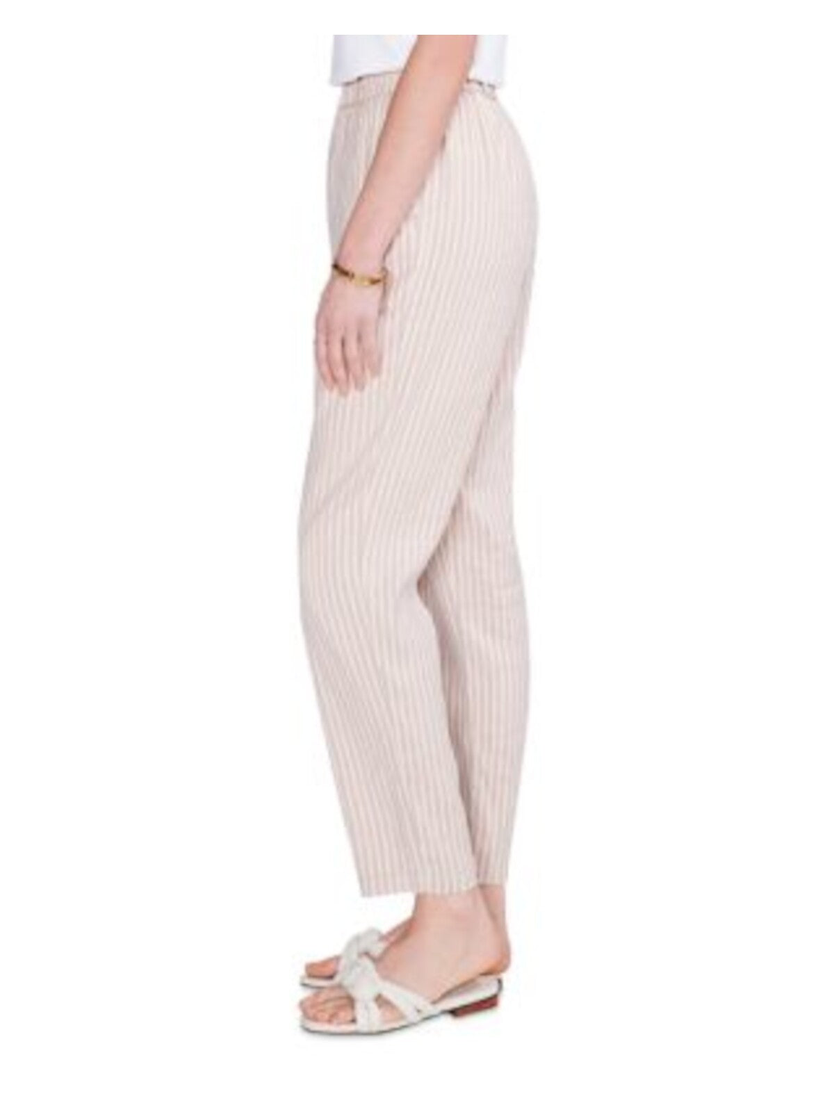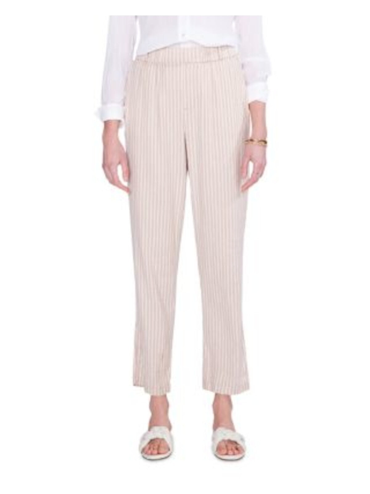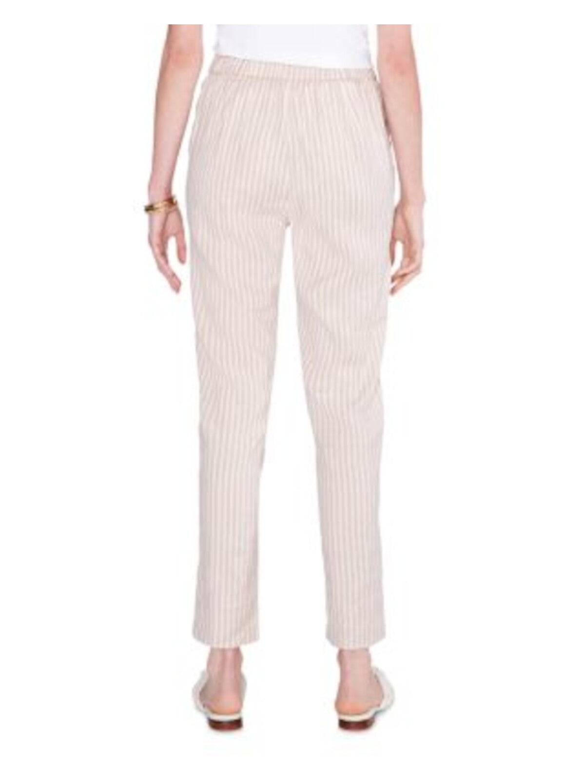 NIC+ZOE Womens Beige Pocketed Faux Fly Elastic Waist Ankle Striped Straight leg Pants 12