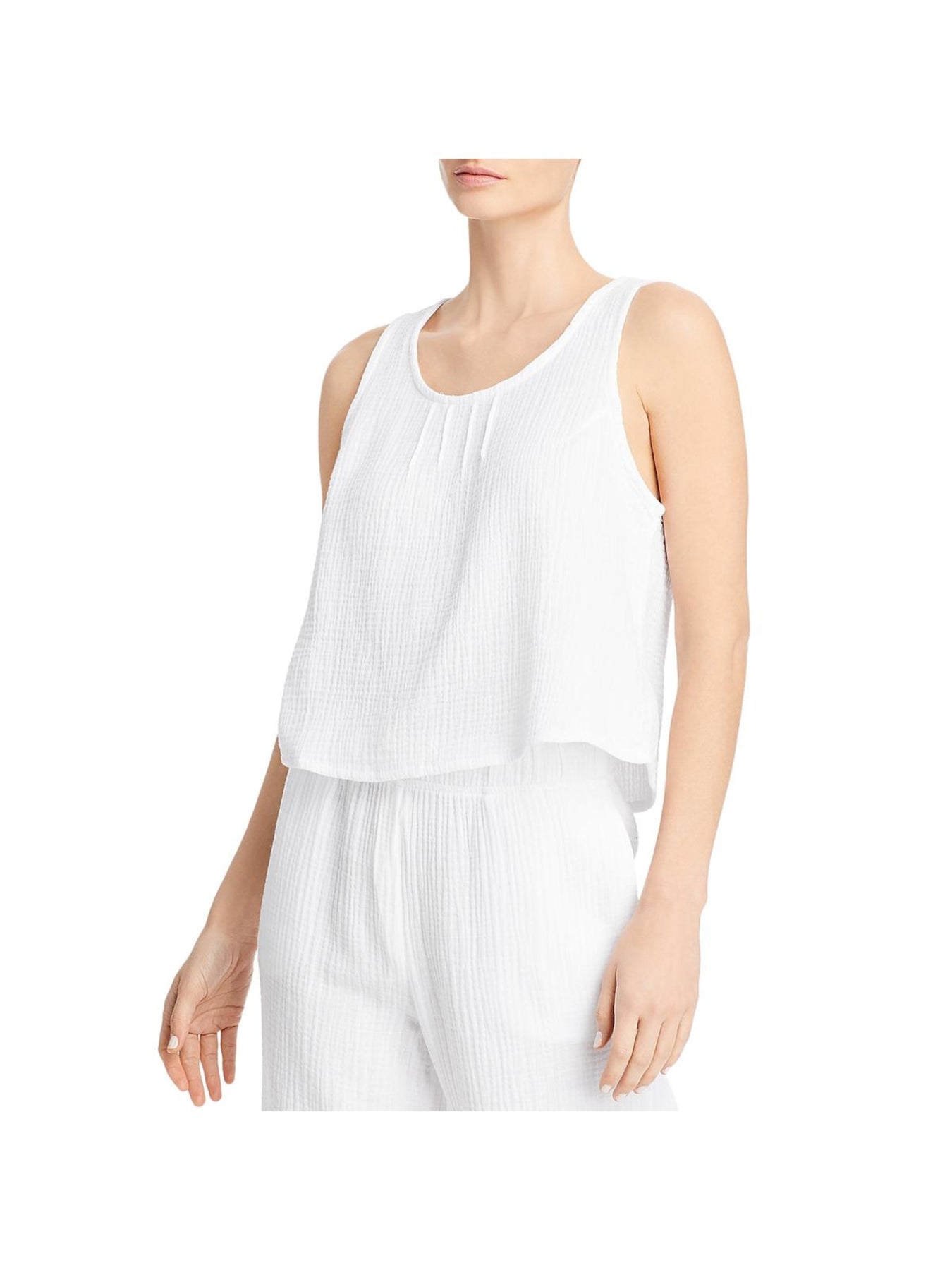 THREE DOTS Womens Top Tank Sleeveless Scoop Neck Double Gauze Pintuck Front