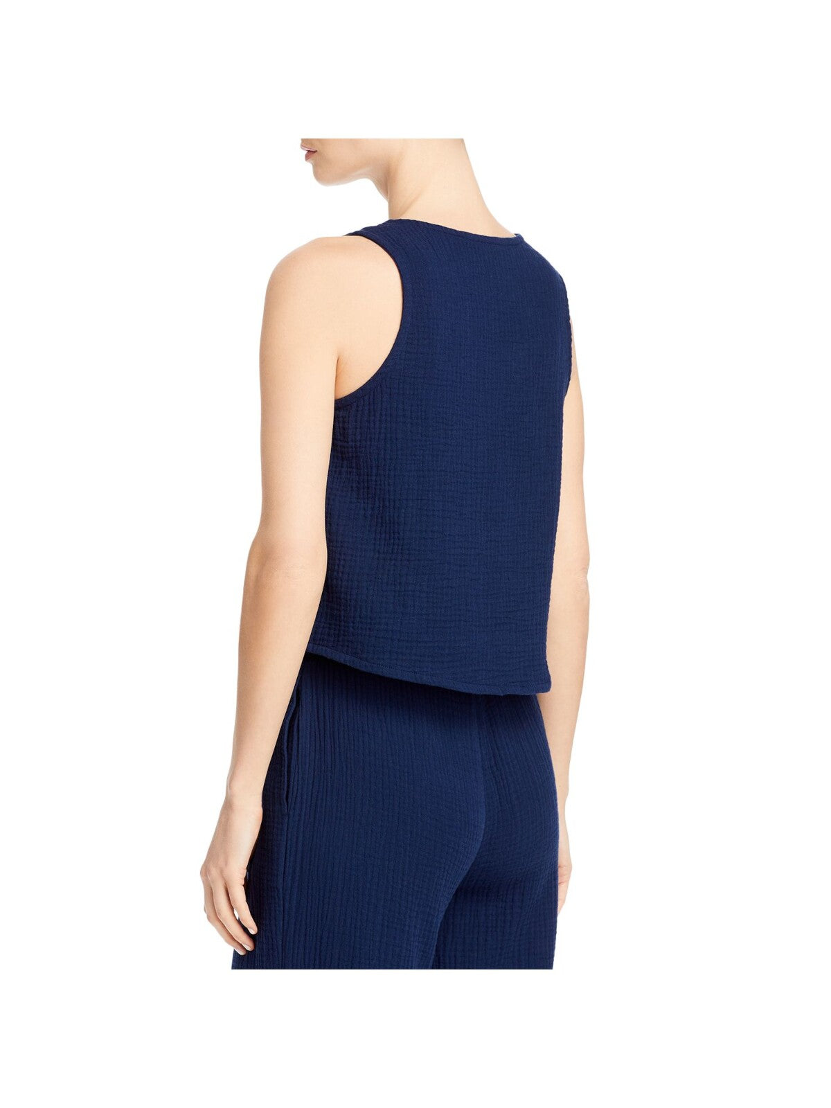 THREE DOTS Womens Top Tank Navy Textured Sleeveless Scoop Neck Solid Double Gauze Pintuck Front S