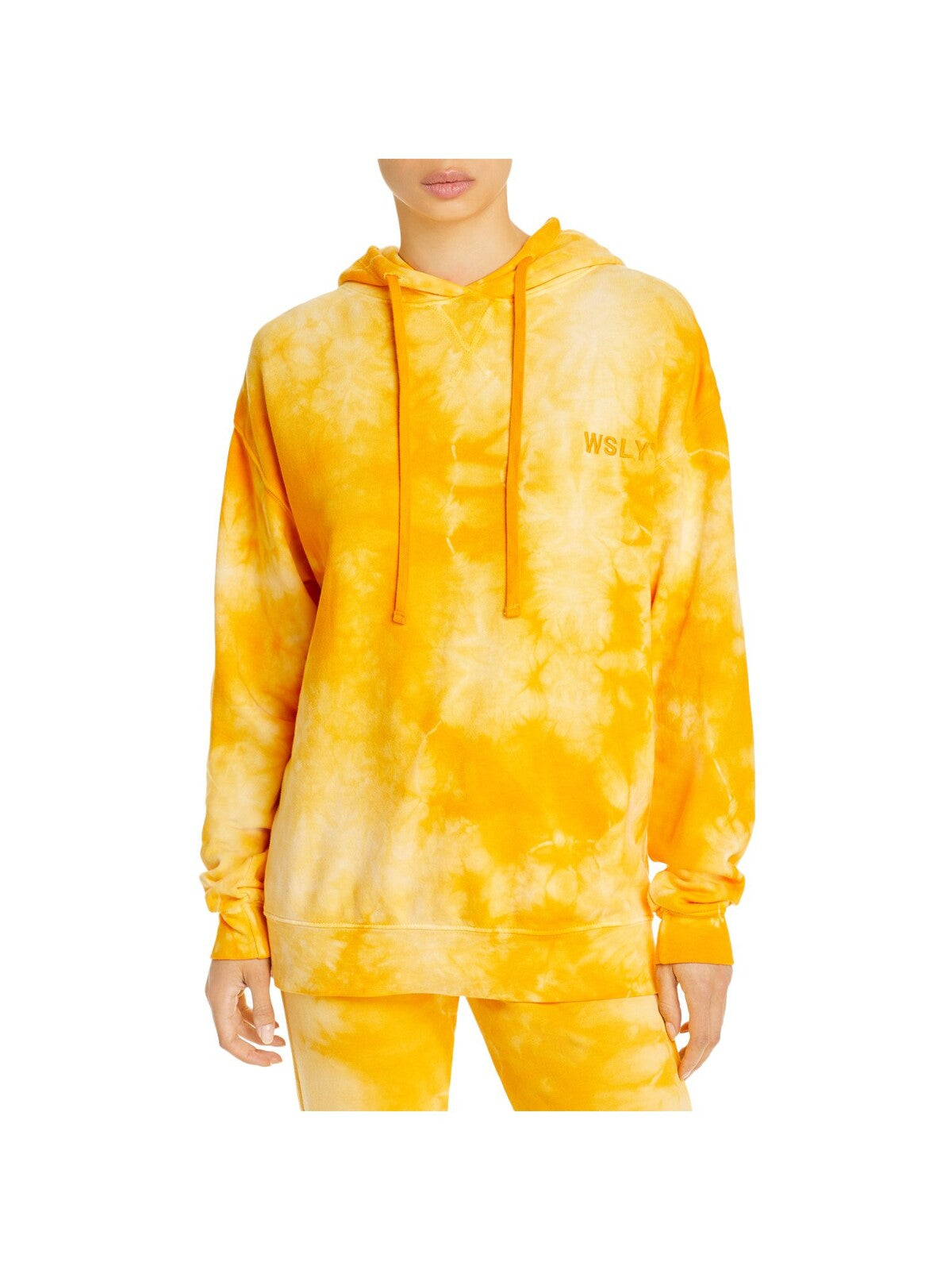 WSLY Womens Top Hoodie Yellow Tie Long Sleeve Tie Dye Oversized S